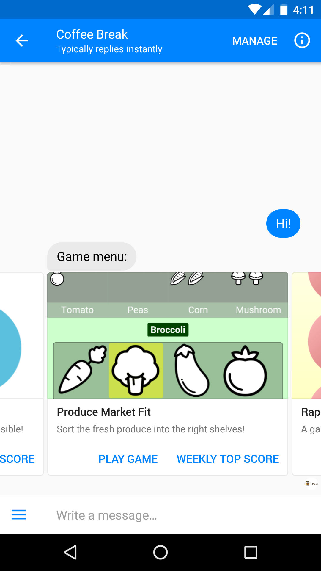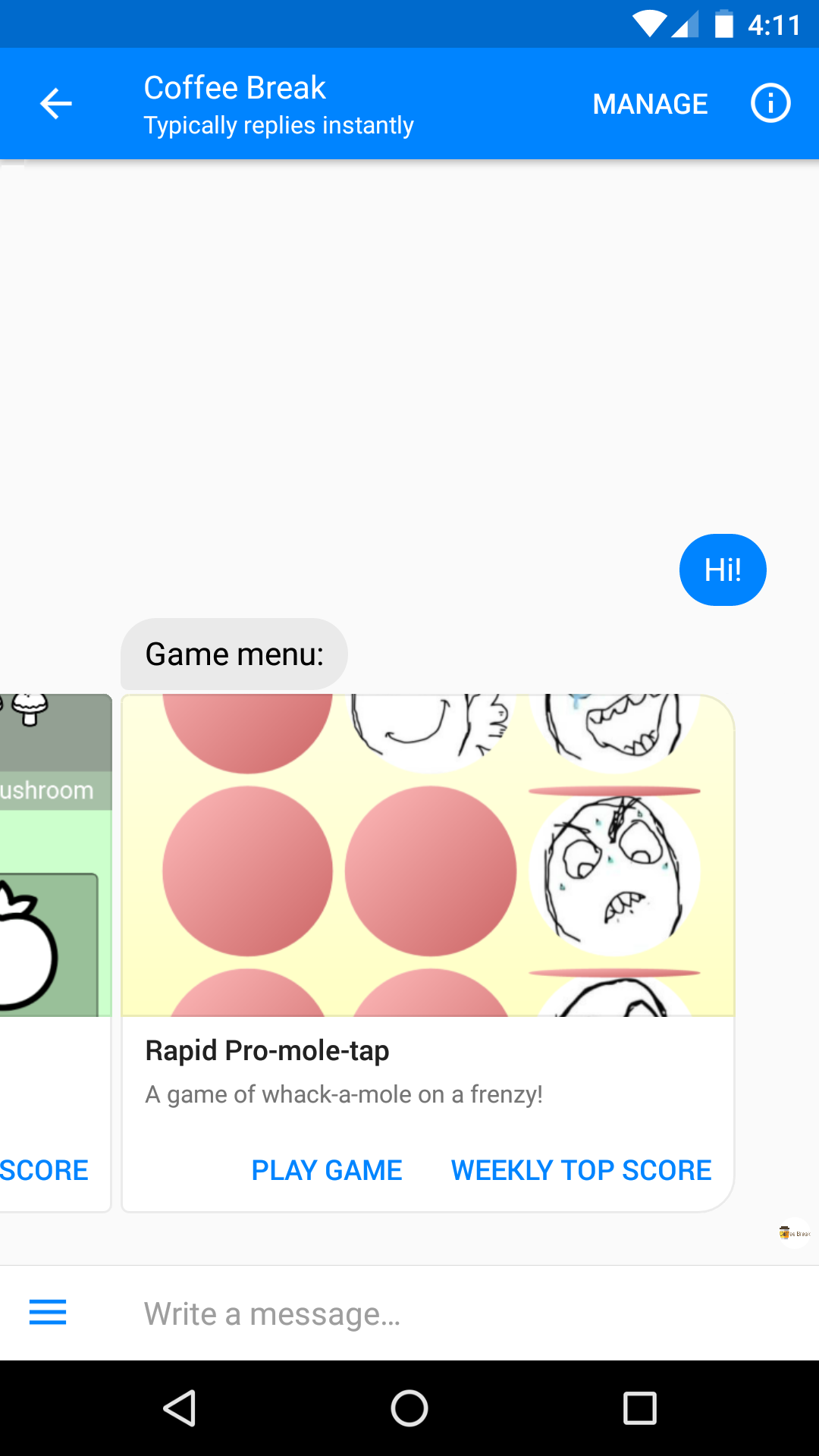 Mini games played directly on Messenger