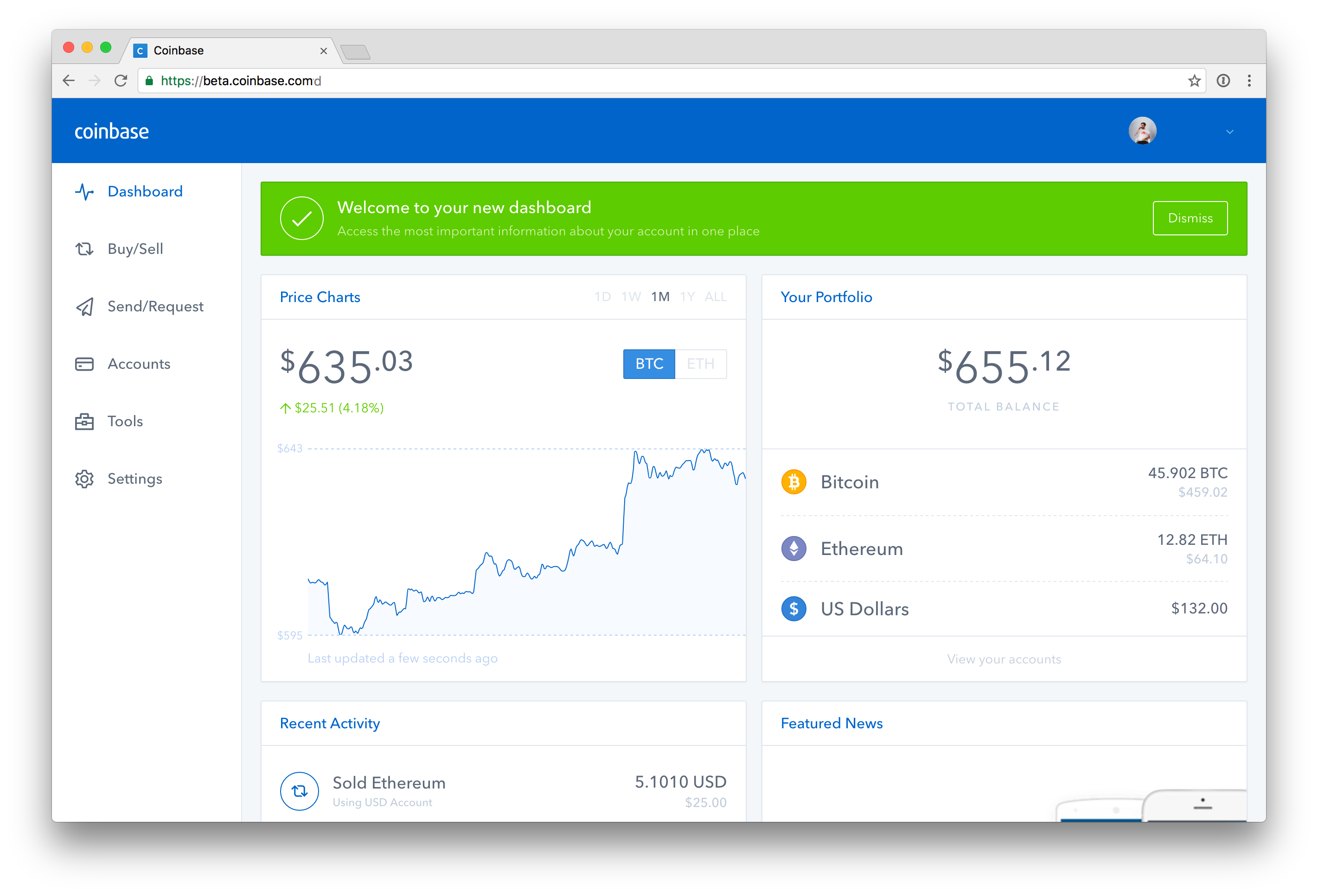 Coinbase product engineer here. We're excited to launch the new Coinbase beta today after months of work. This is the largest change we have made to the product in couple of years. This marks our move from the original bitcoin wallet design, with the focus on transaction history, to a more "brokerage" design, focused on investing in digital assets like bitco… See more