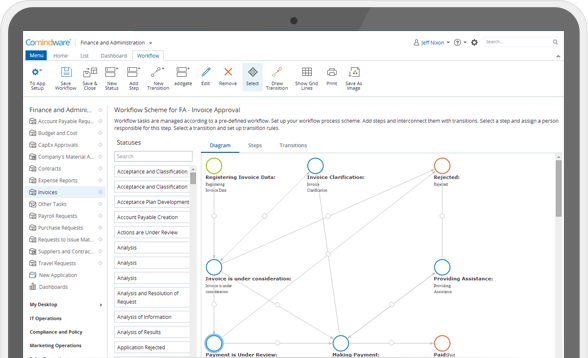 Comindware Tracker’s innovative design is due to Connect Step® Technology, a powerful engine that works to generate tasks automatically “in the right order, at the right time, by the right person.”