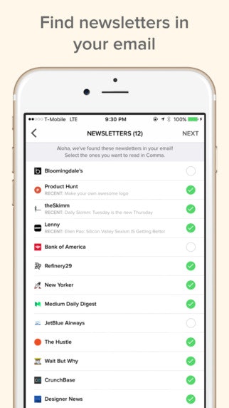 Why isn't there a Google Reader for the millions of email newsletters around the world? I've been using Comma on my iPhone as of late and it does exactly this, first scanning your Google Account for associated email content and presenting daily reading in an easy way to digest. There's also a "featured" section that allows you discover new and upcoming newsl… See more