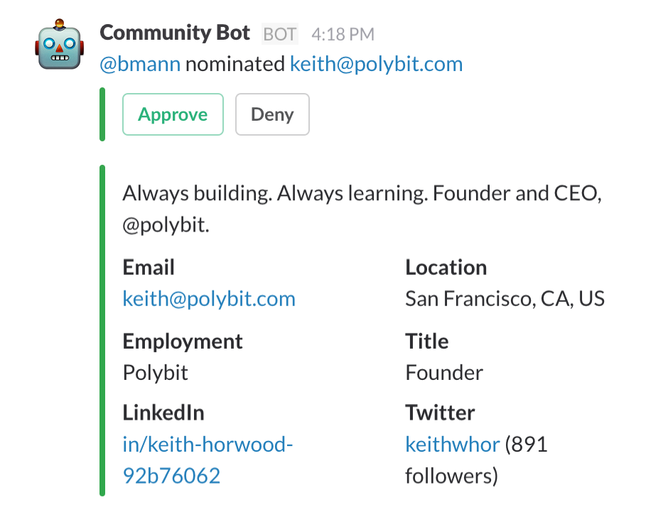 Hi folks, I'm one of the people who made Community Bot and I'm happy to answer questions. As Sean pointed out, this is something that evolved out of our own community and we're curious to hear what other tricks and tools people use to manage large semi-open communities.
