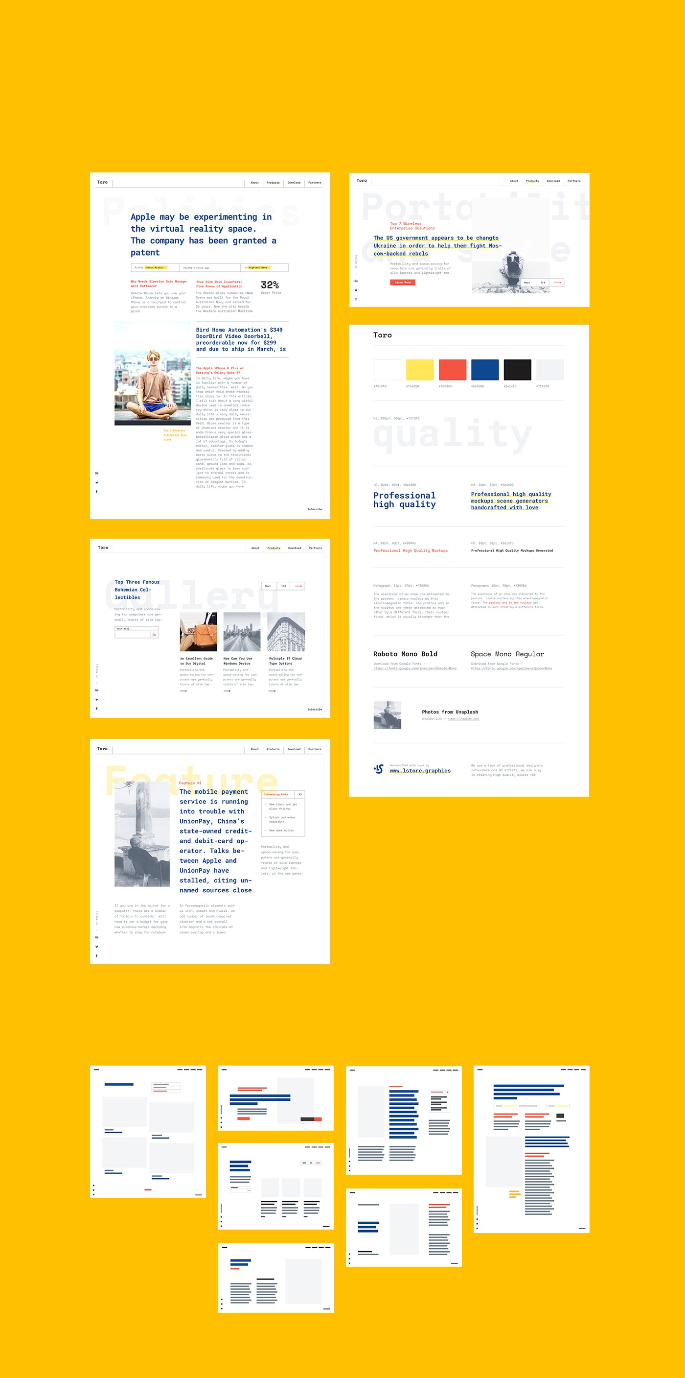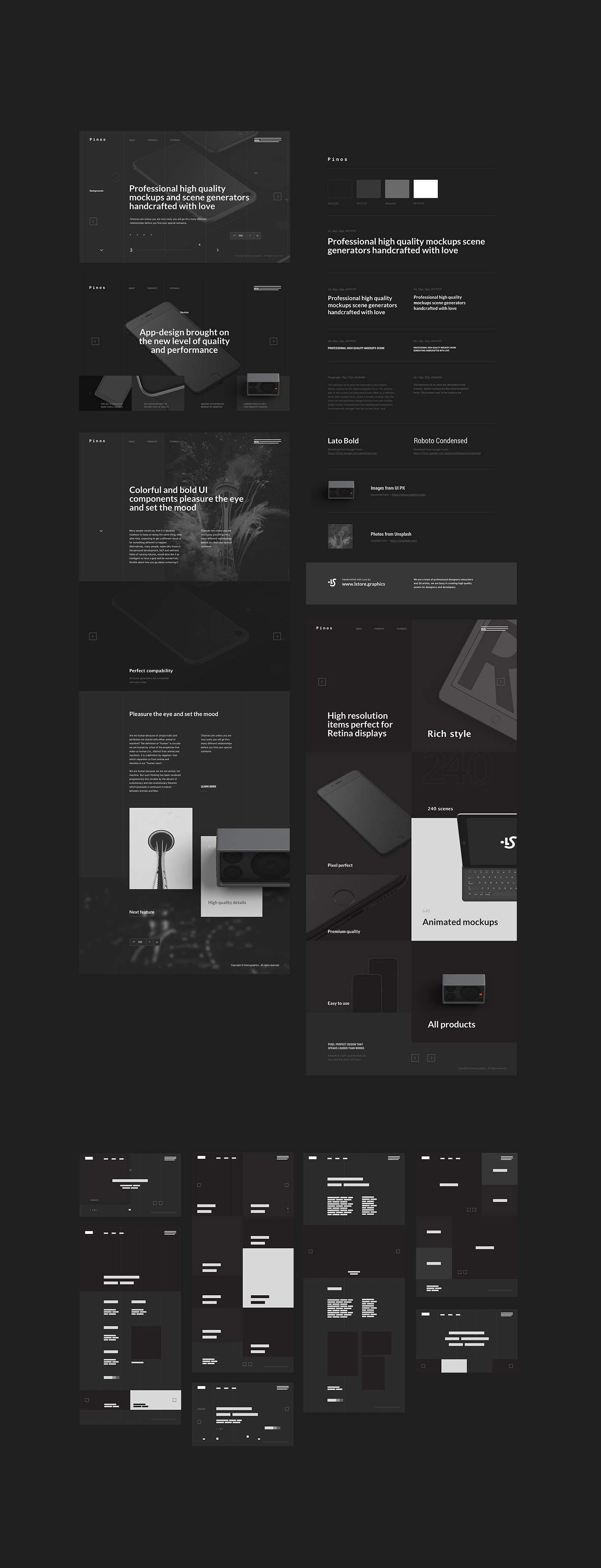 The set contains 78 layouts and a style guide for each concept, for Web-, Interaction-, Digital-, UI/UX-Designers, Developers and Marketers.