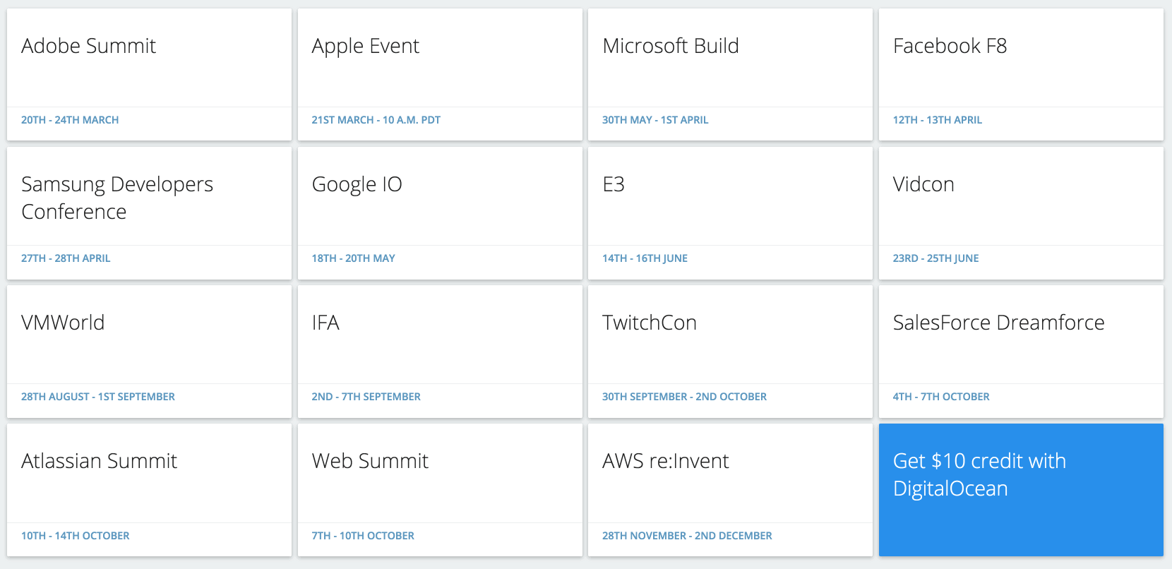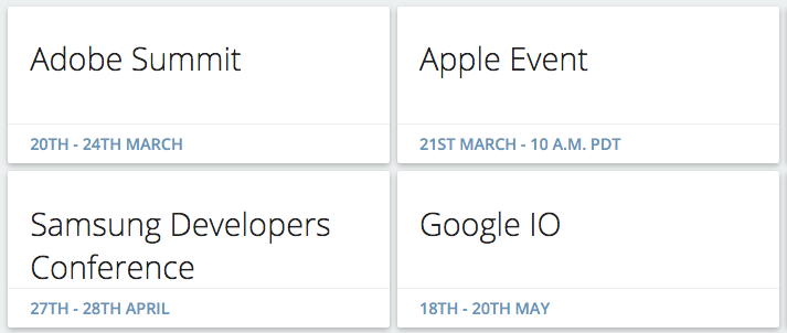 Just a little project I worked on the past couple of evenings. I couldn't find anything out there that is easy on the eyes and simply displays tech events and includes company announcements, like the one from Apple on Monday.