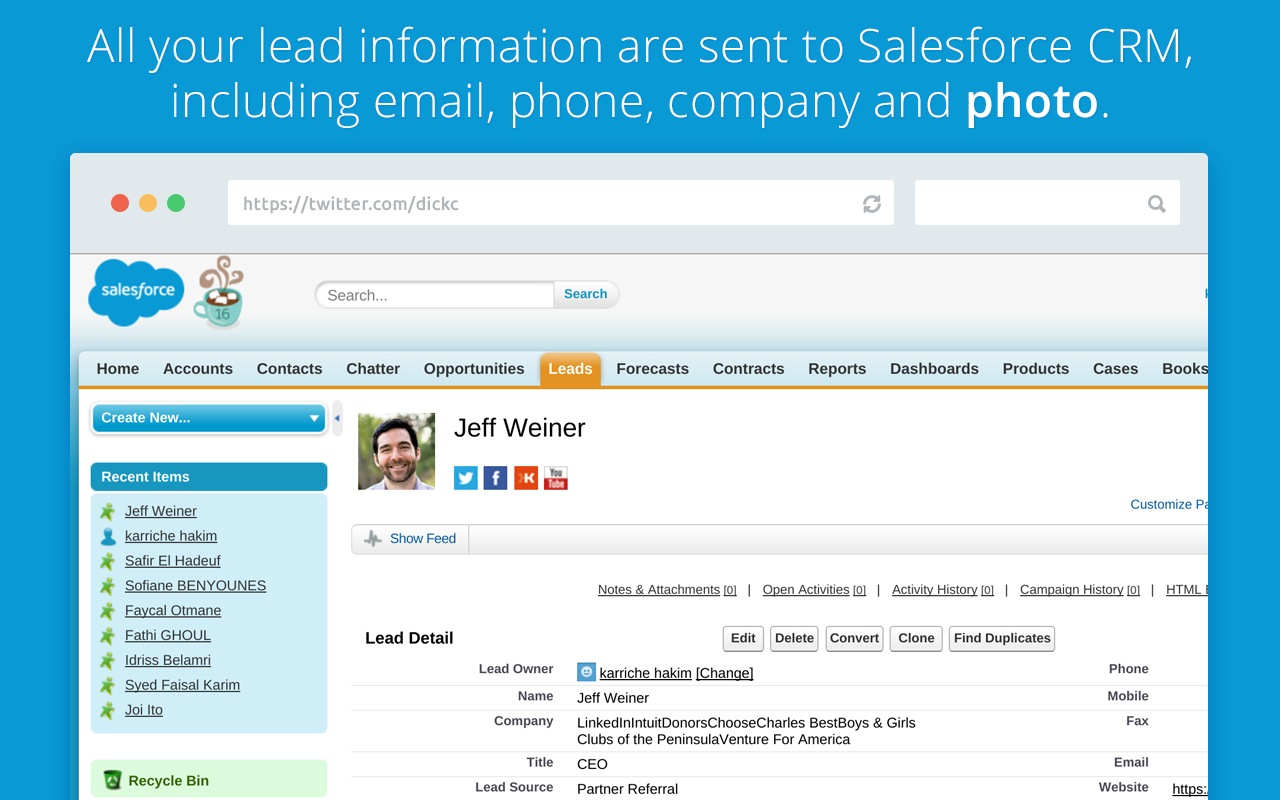 Copylead team is the same team behind a new born CRM app called ioGrow, in our CRM we have this feature to help sales reps get leads or prospects from Social networks profiles such as LinkedIn, Twitter, Gmail, Facebook and more. And whenever we pitch it to CRM users they got impressed and they immediately love this feature as it saves them hours of data entr… See more