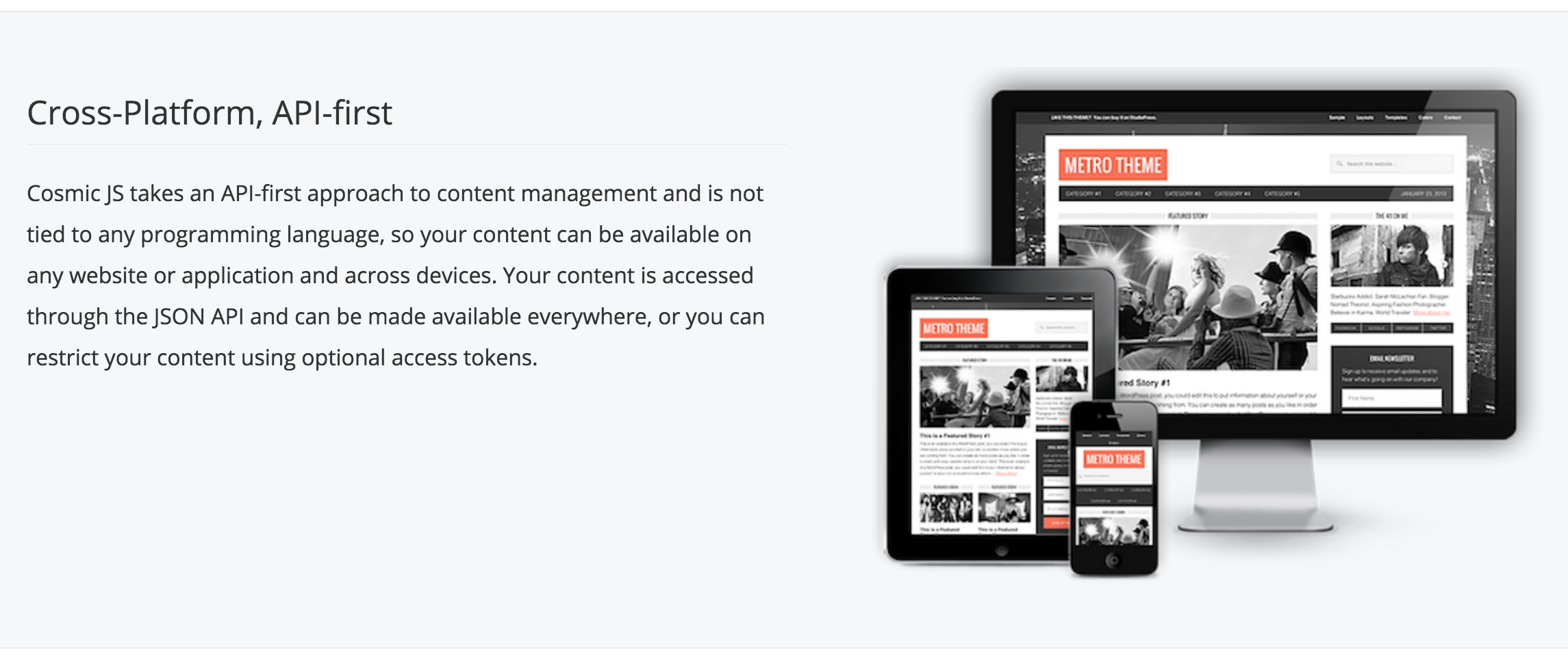Hello! Cosmic JS is an API-first CMS that can be used to power the content for any website or application.