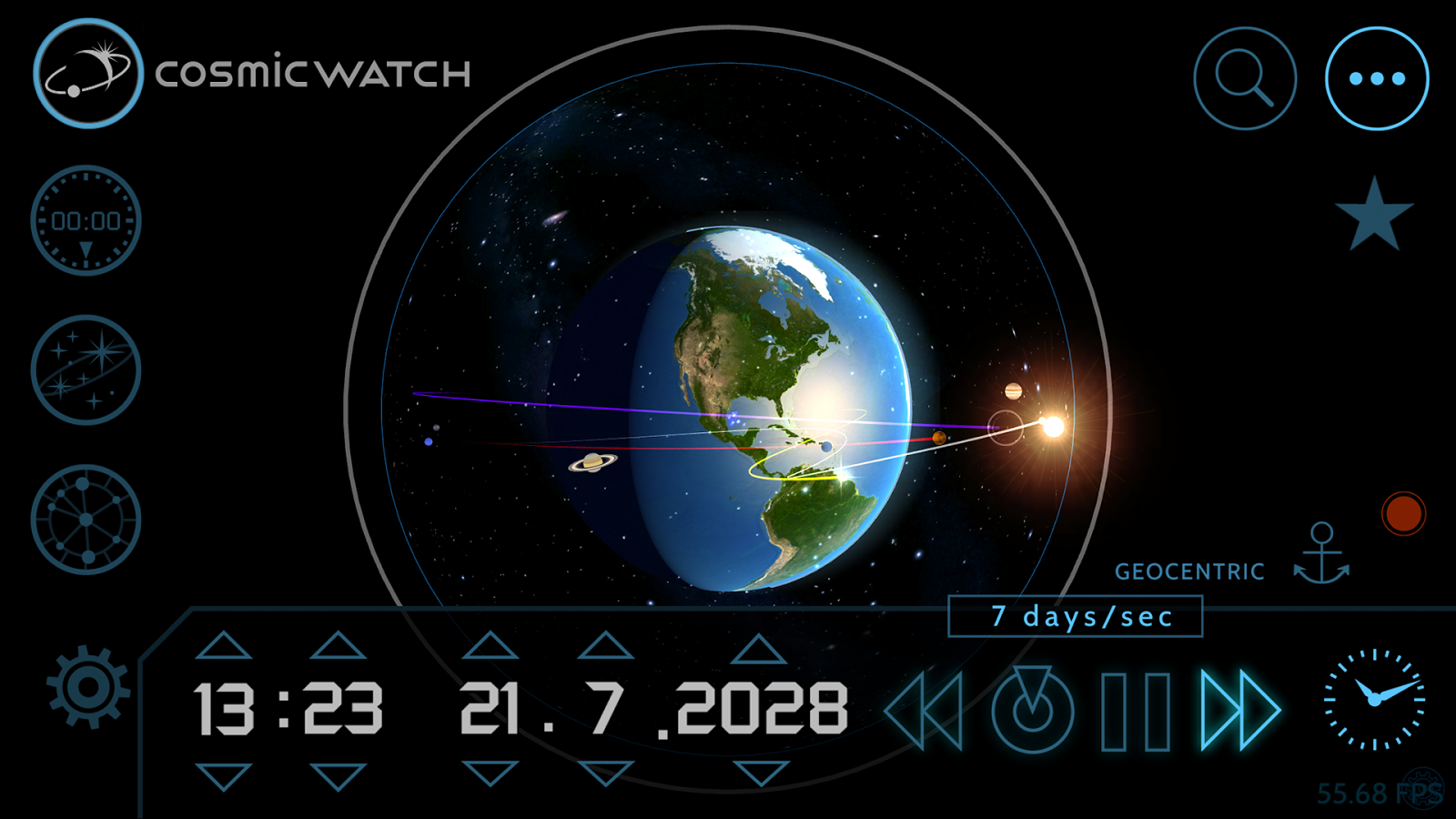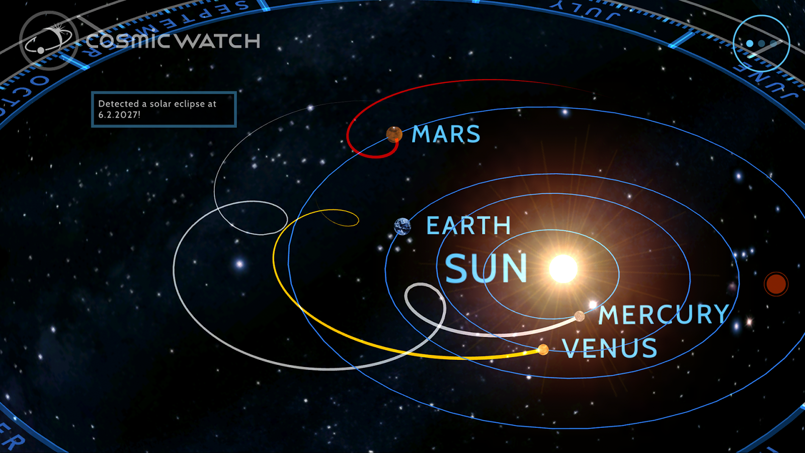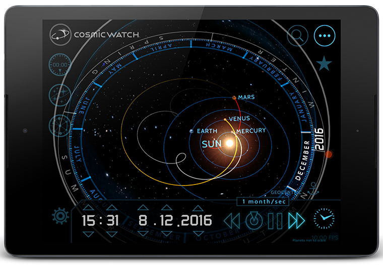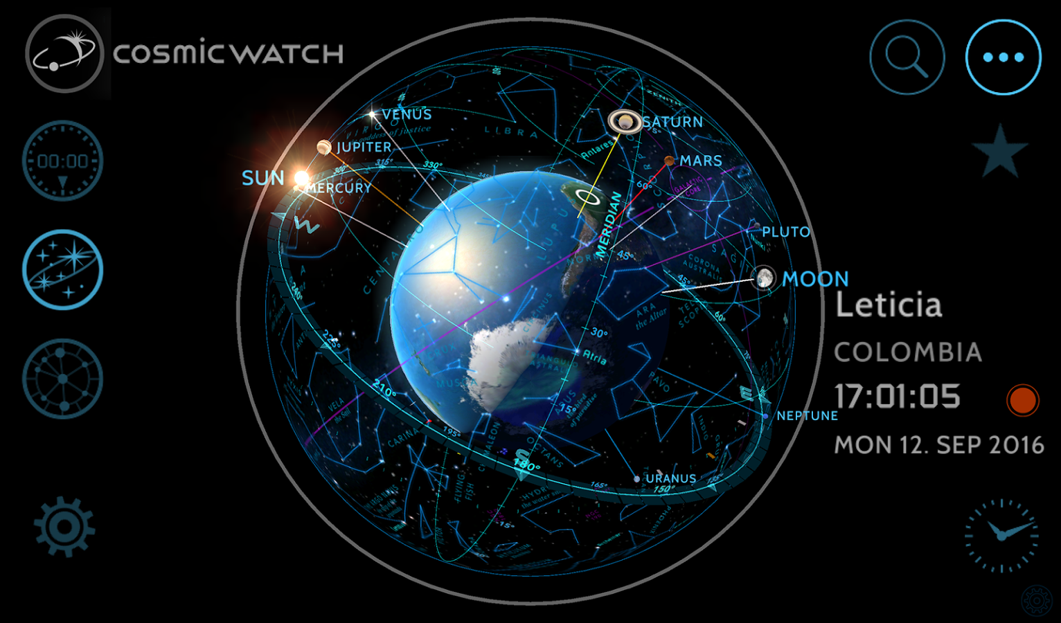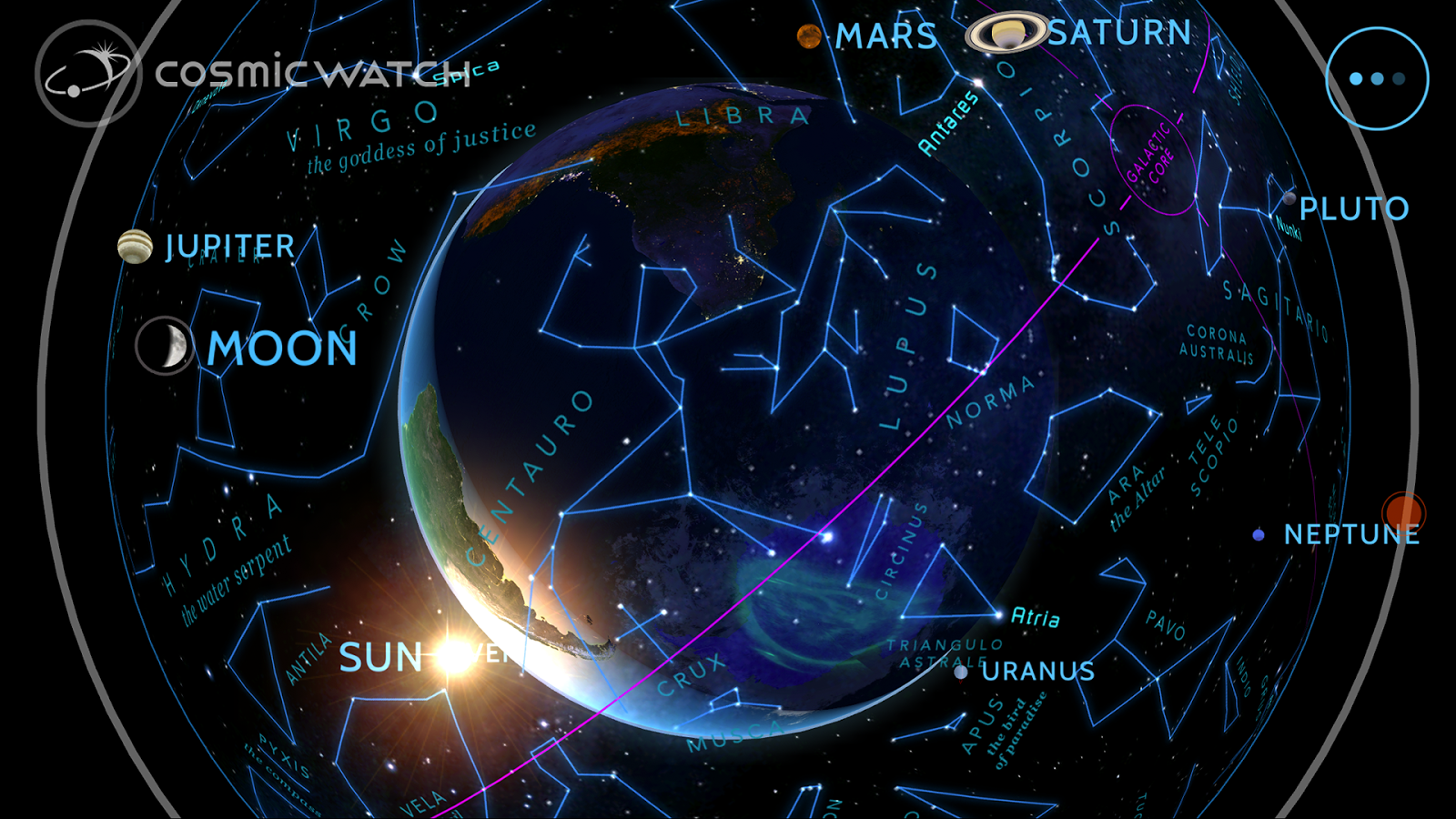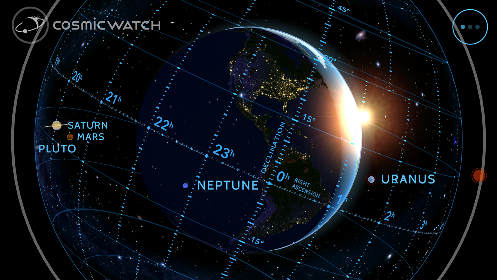 Cosmic-Watch shows you how to read time according to the motion of the cosmos. Watch the sky, the Earth cycles and the dynamics of the solar system in the past, present and future. Learn about astronomical events and bring the sky back to your everyday life.
