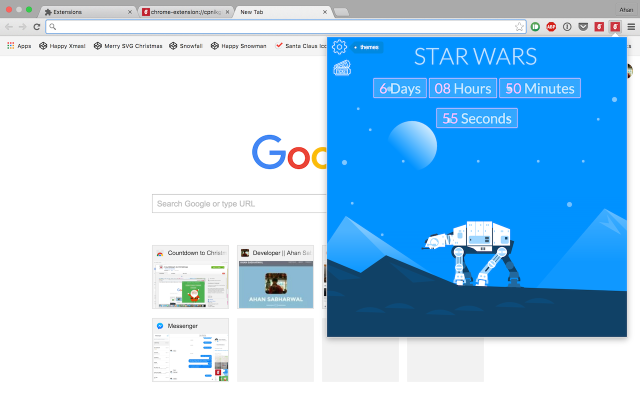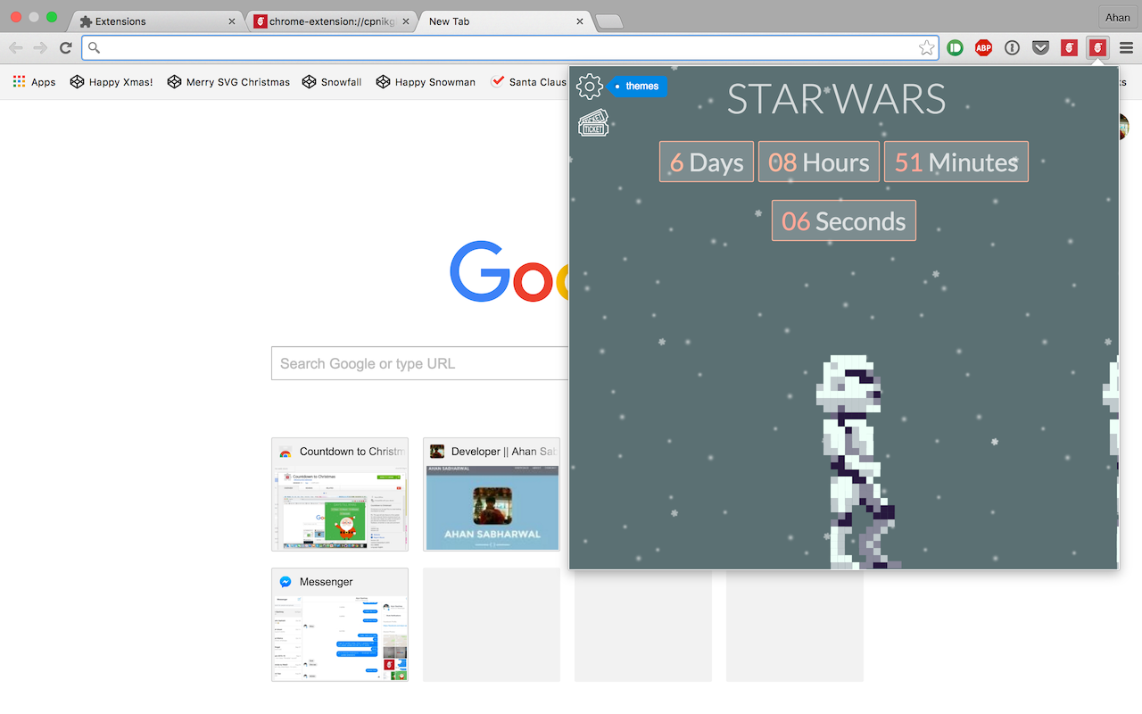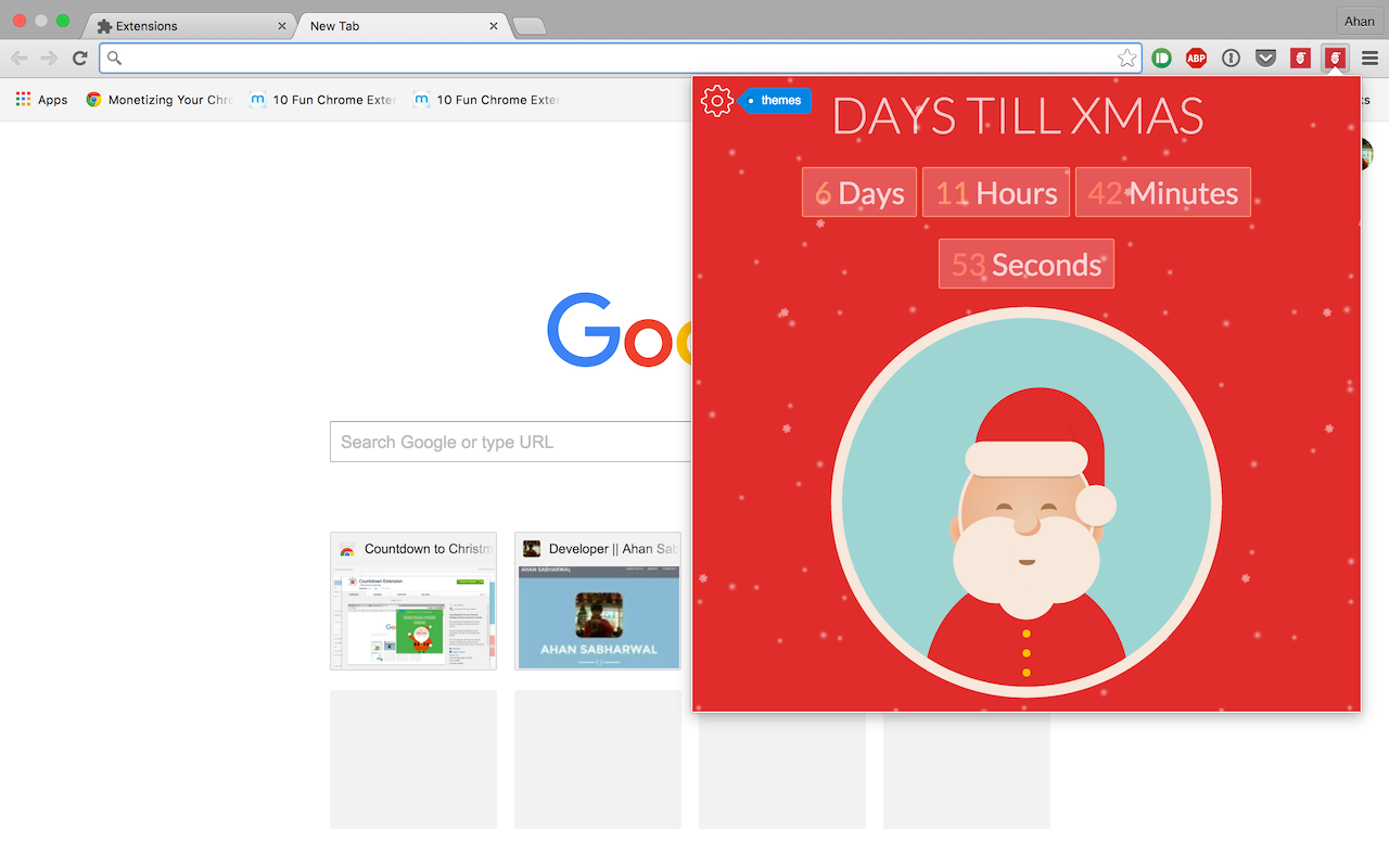 Hey, I'm the maker of Countdown Extension. Countdown Extension was a small project I hacked up one night, and I didn't expect it to do so well! I was super excited for Christmas, and well, I made Countdown Extension! I hope you like it!