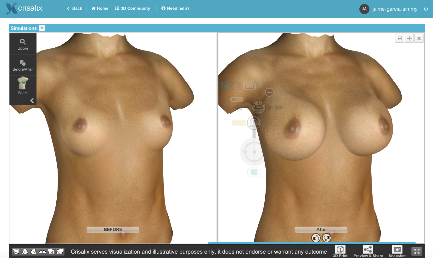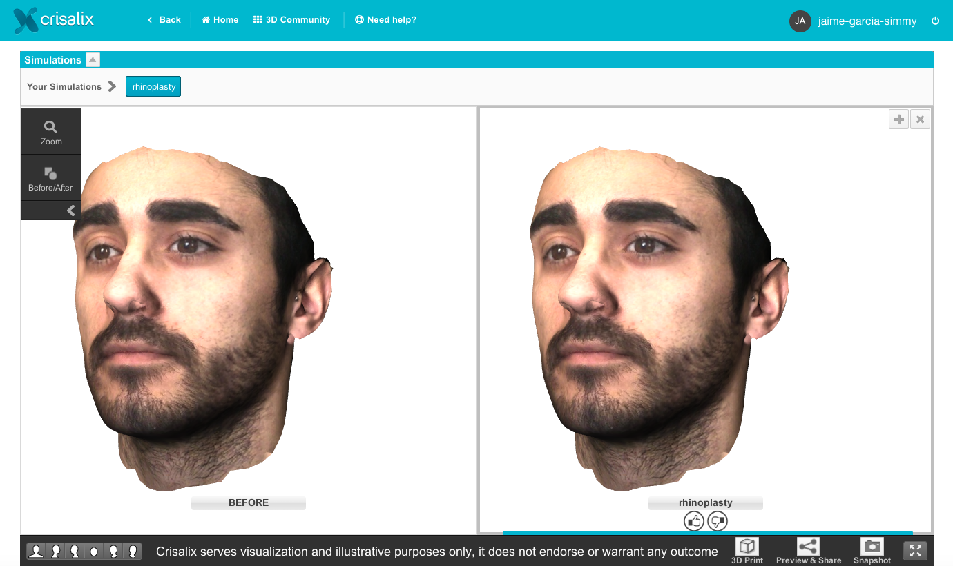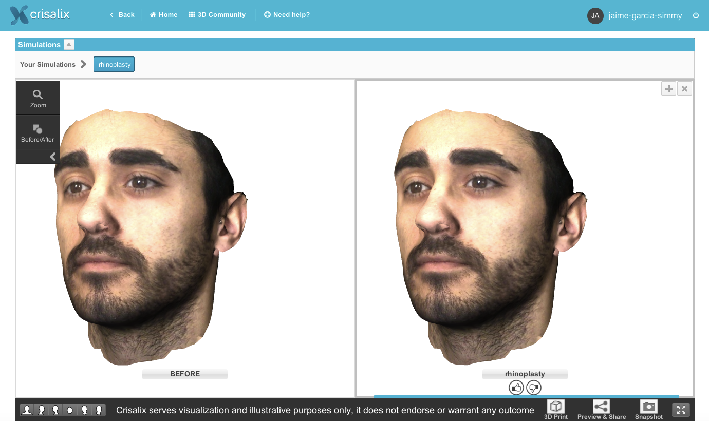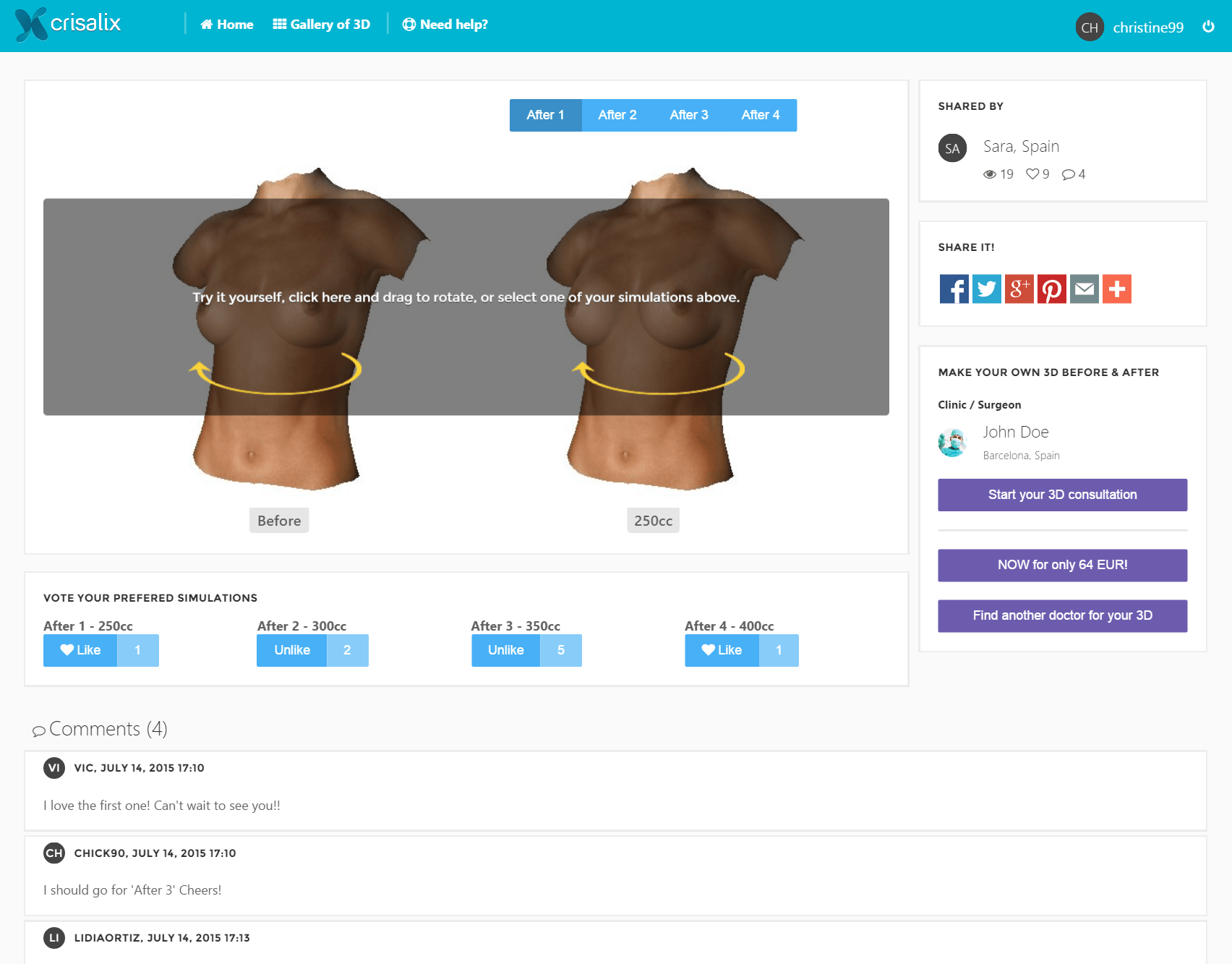In order to get feed-back from family, friends and from the Crisalix 3D community, patients can now share their Before & After on the first 3D plastic surgery community.