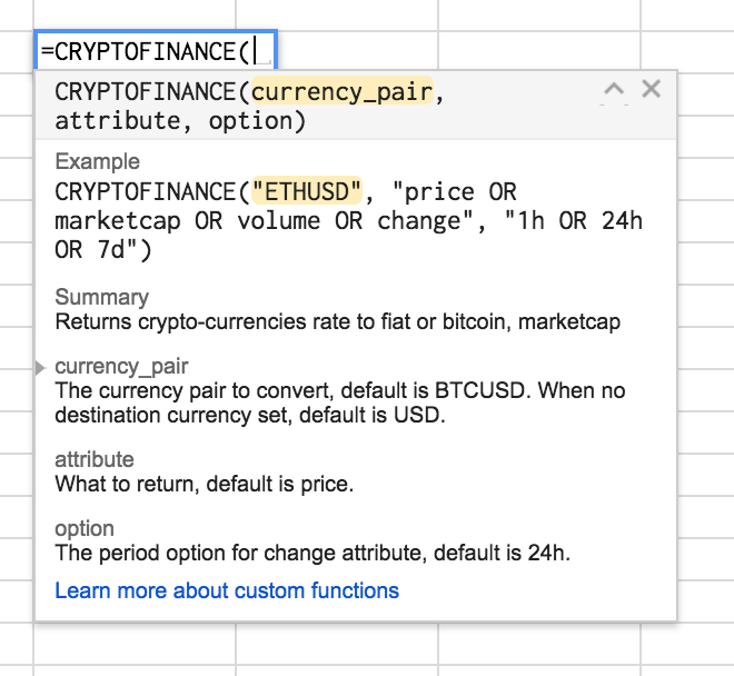Cryptocurrency rates in Google Sheets
