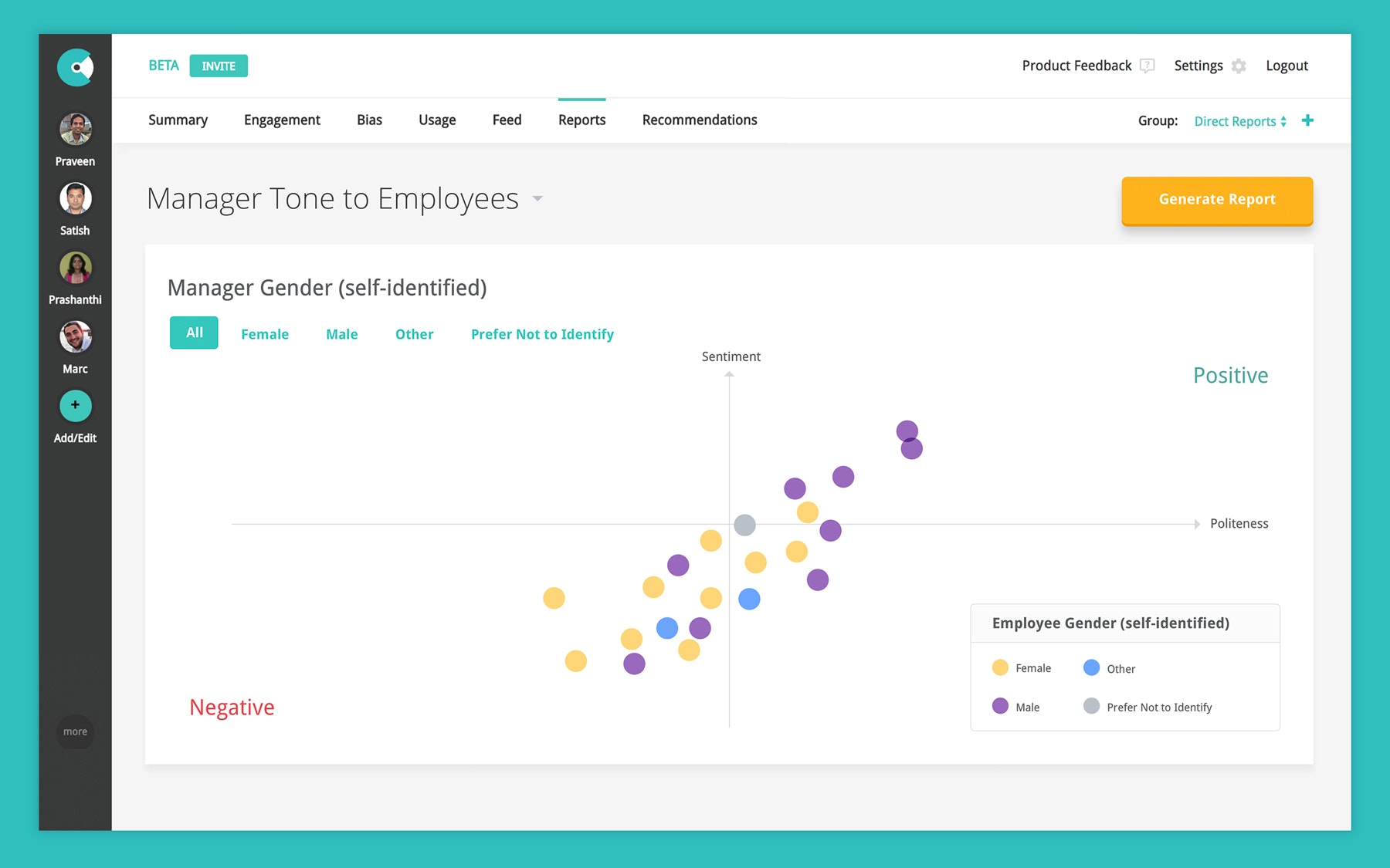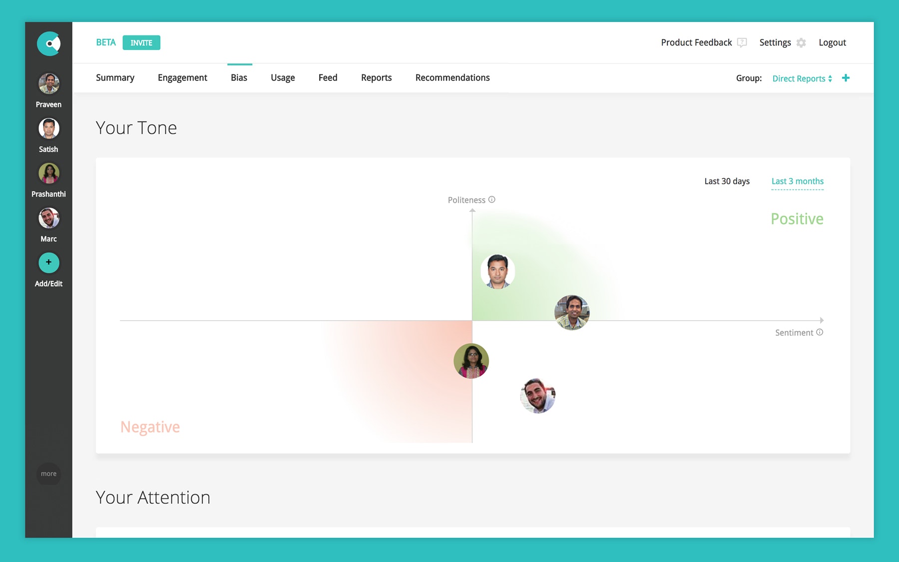 I am really looking forward to seeing the tool develop further. I would love to get an objective understanding of my biases, and I expect other team leaders need that as well. I am sure you will get there and I see that you will provide enormous value to team leaders in the future.