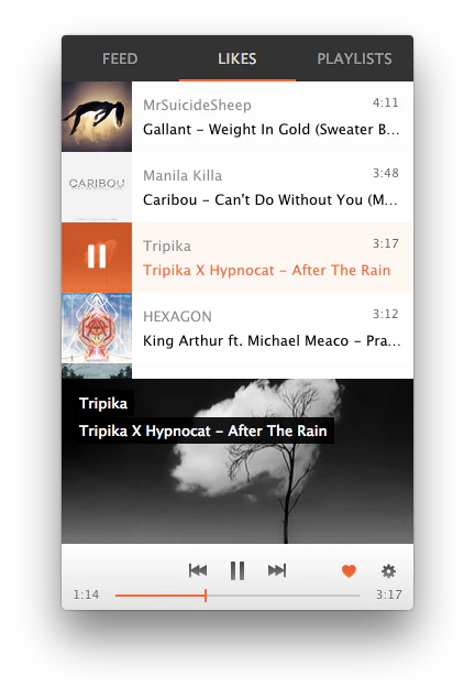 A SoundCloud player that lives in your Mac menu bar