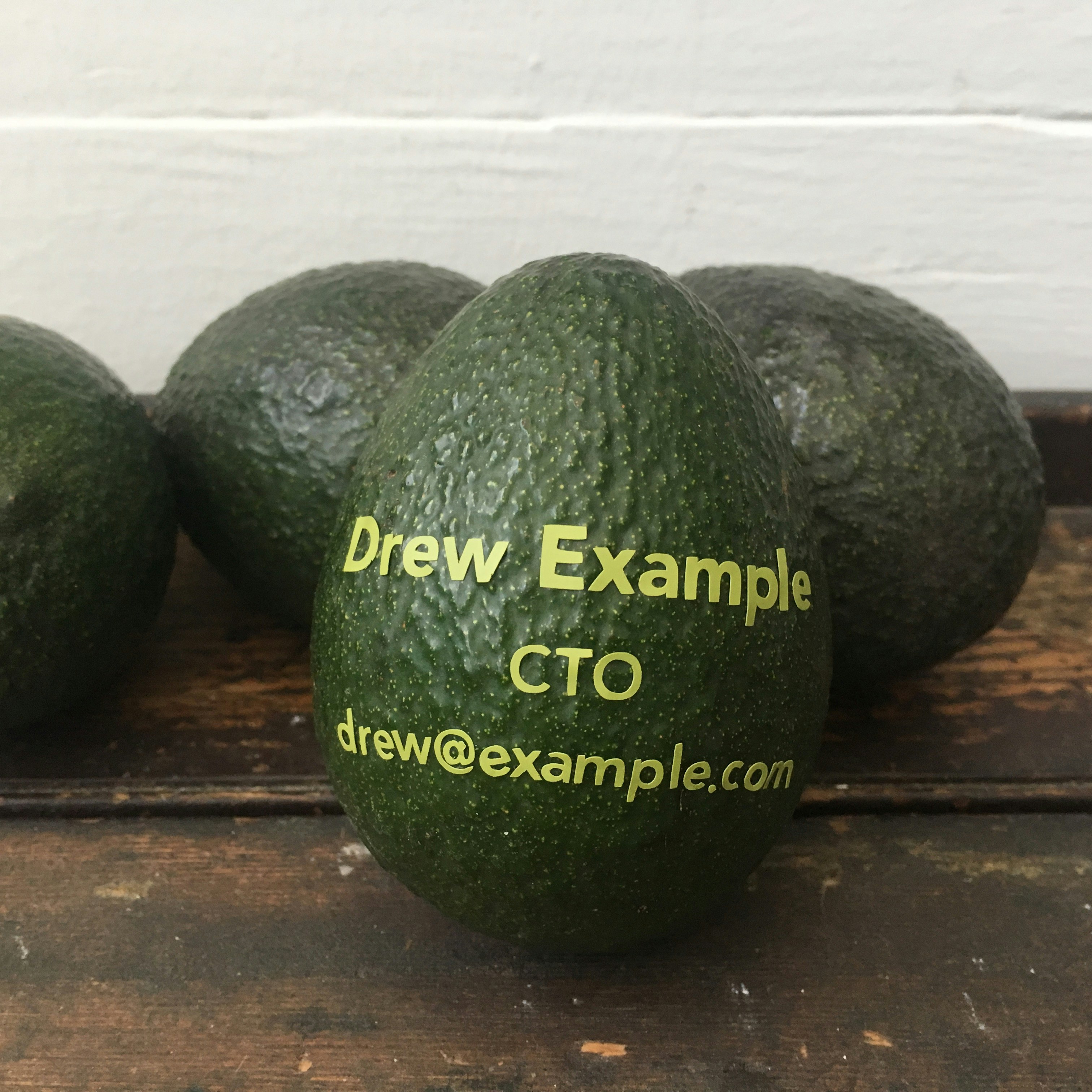 Paper business cards create so much desk clutter. I'd be so excited if I received an avocado instead!