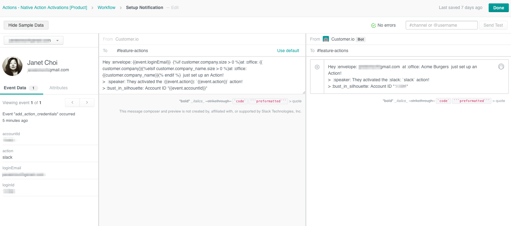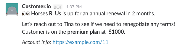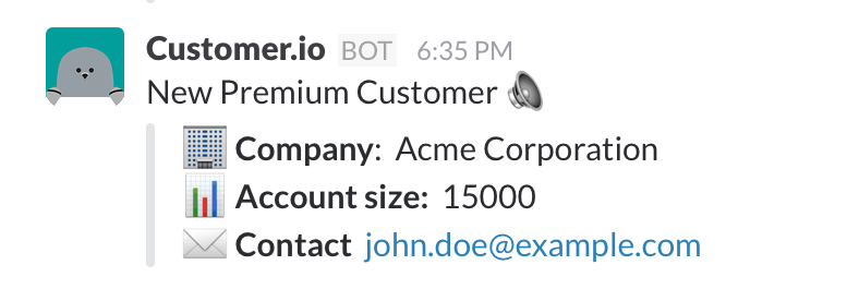 Pleased as punch to share our new Customer.io Slack Action, which triggers messages into Slack based on what users are or aren’t doing in your app/product/service.