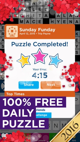 A brand new crossword puzzle is published each night at 10pm