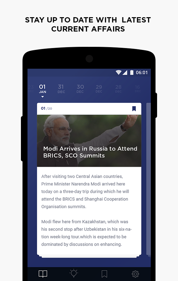 Daily Current Affairs & Quiz is the second offering from the team that brought you the top-rated Testbook - GATE 2016, Placement, IBPS, GK exam preparation app. Now master Current Affairs anywhere, anytime for FREE.