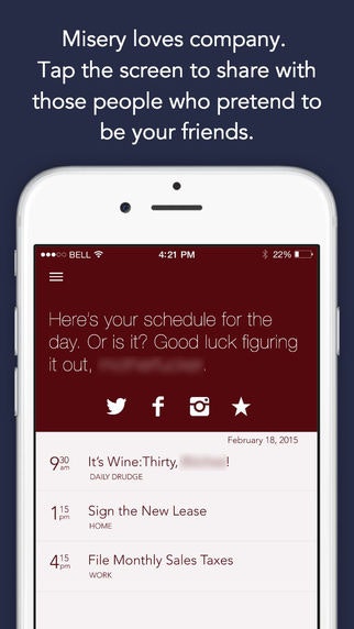 So, love the idea because who doesn't like a little snark with their agenda, but after purchasing the app, it crashes every time instead of opens. Not cool for a paid app. Any idea what's going on?