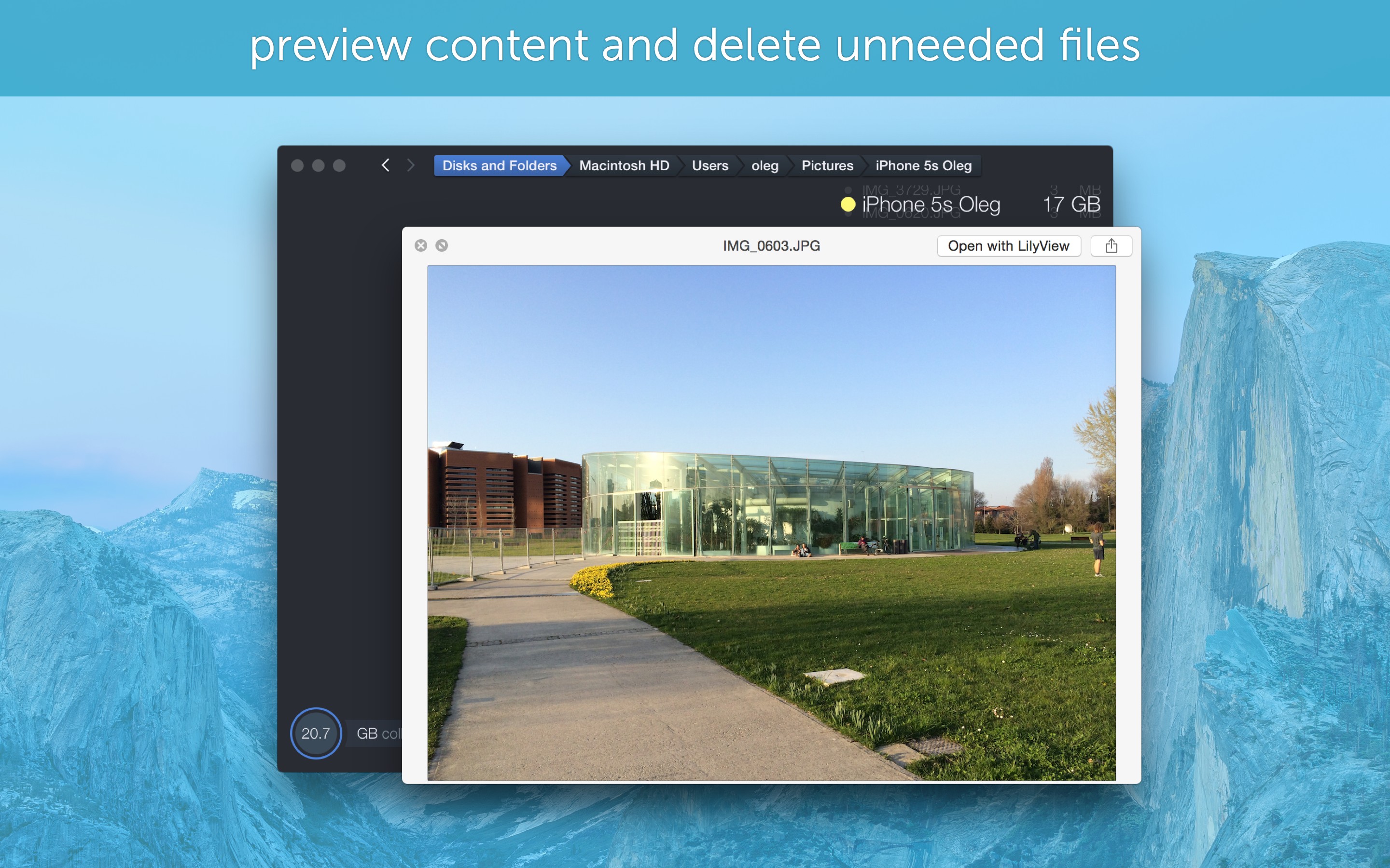 I find this very convenient when you're looking to free up some space (especially if you're on a MacBook Air 128GB like me). Must-have for all Mac users.