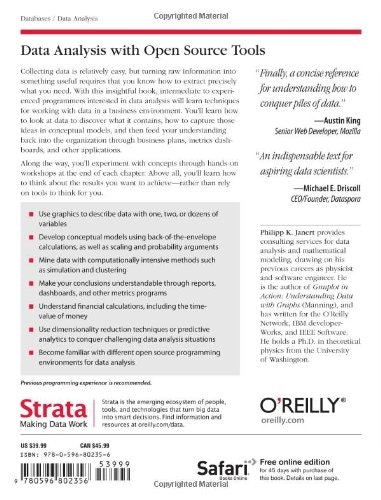 Author Philipp Janert teaches you how to think about data: how to effectively approach data analysis problems, and how to extract all of the available information from your data. Janert covers univariate data, data in multiple dimensions, time series data, graphical techniques, data mining, machine learning, and many other topics. He also reveals how seat-of… See more