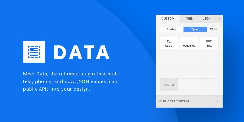 Craft brought real data and serious speed to your workflow. Now, we’re making it even better, with one ultimate plugin: Data, giving you the power to pull text, photos, and now, JSON values from public APIs into your design.