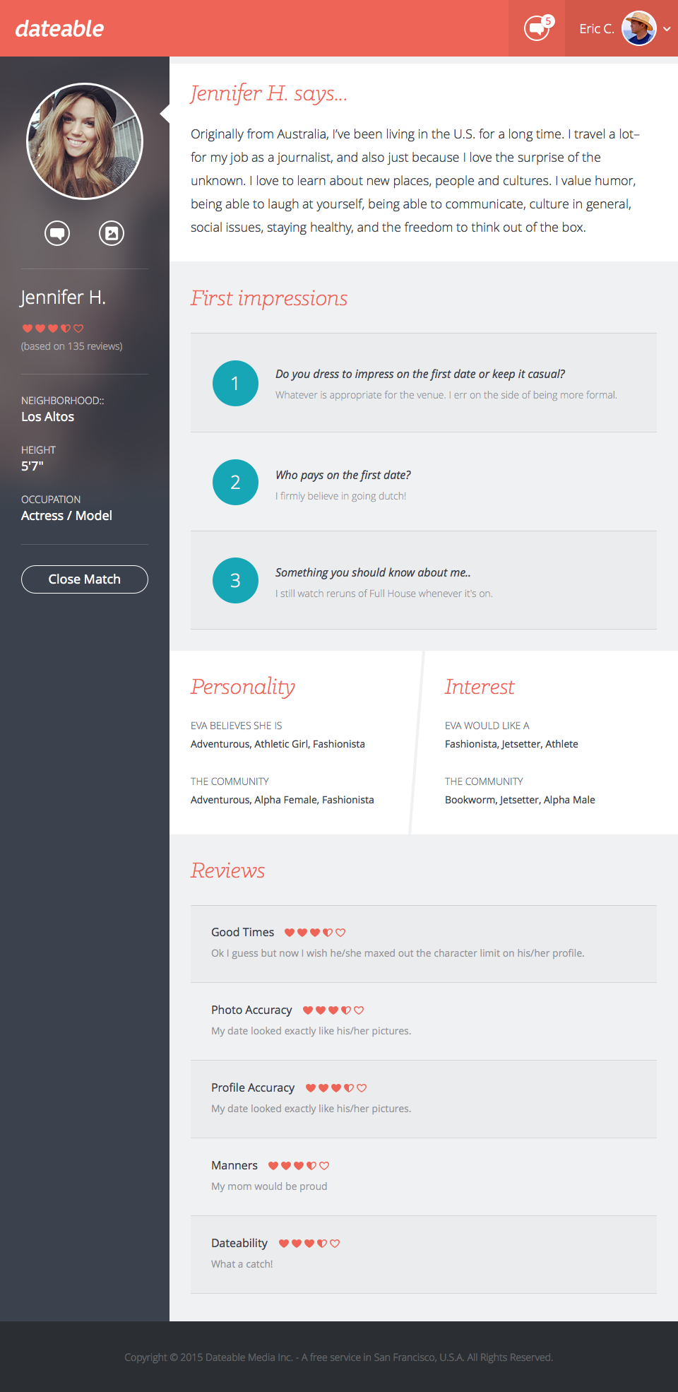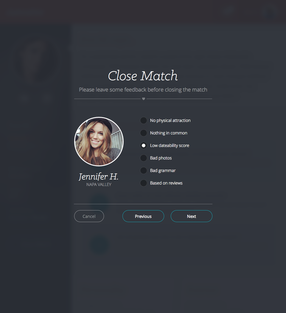 I saw a "feedback-style" feature on another dating app and I'm not sure that is a good way to go (IMO).... someone may have a bad date with a match but that bad date could just as easily be the perfect date for someone else.
