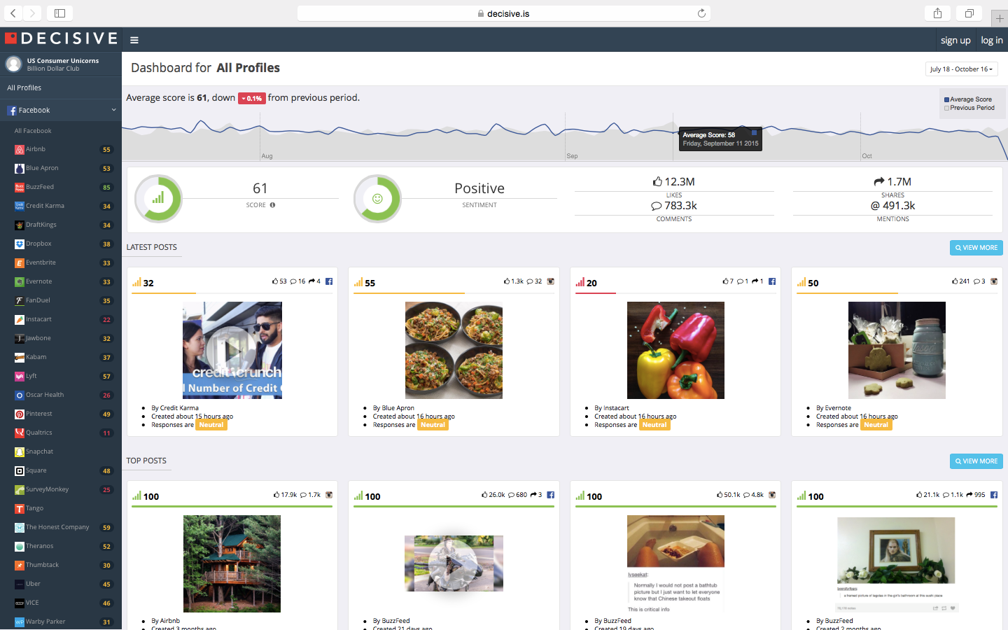 Decisive shows you how your fans are emotionally connecting with the content you post across Facebook, Instagram, Youtube, Pinterest - and many more networks coming.