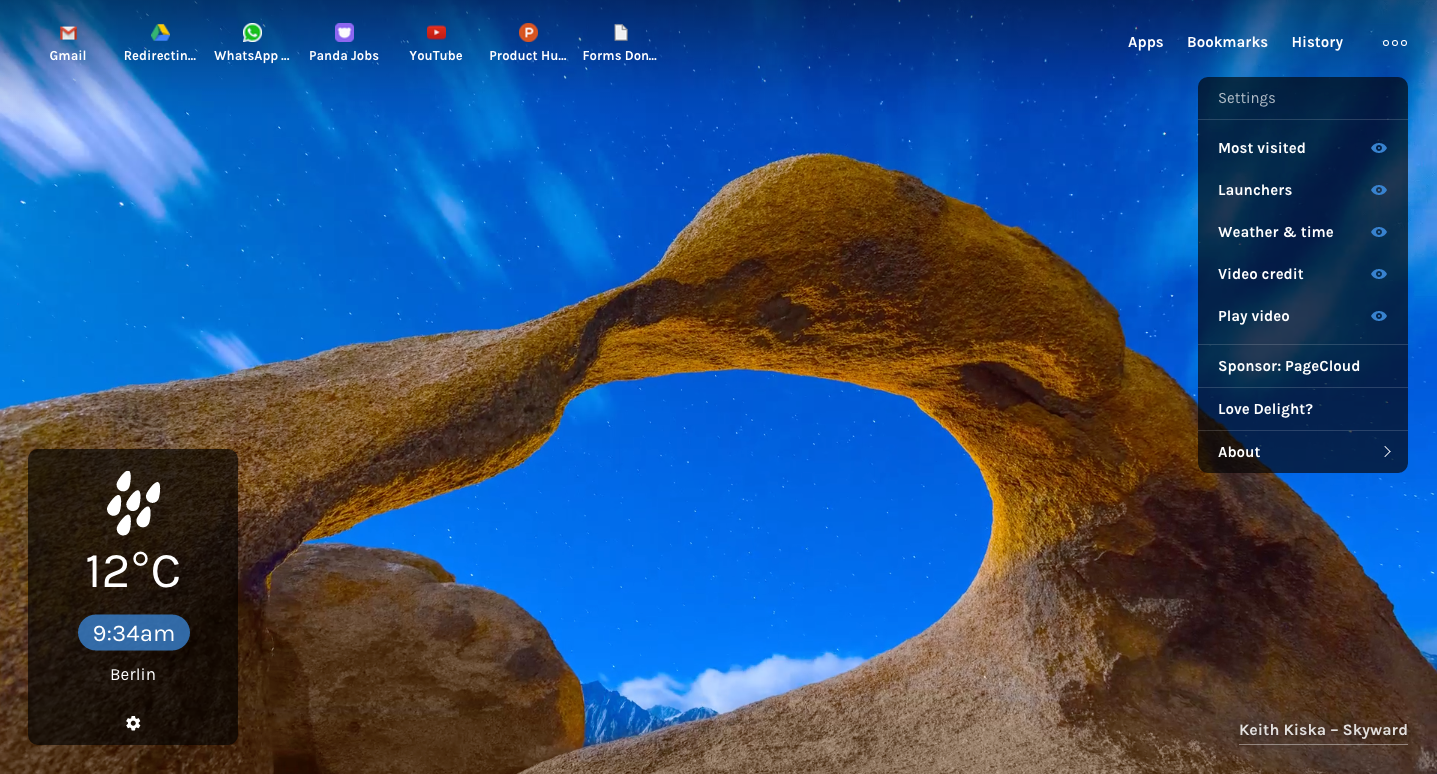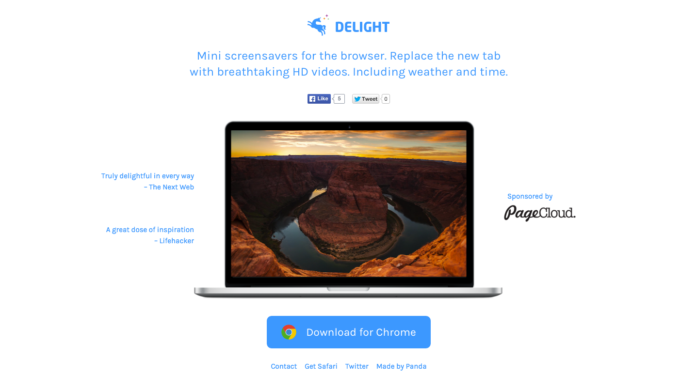 We wanted to bring mini screensavers to the browser. Delight features awe inspiring time lapse photography. Replace the new tab with breathtaking HD videos. Including weather and time. We hope you enjoy. Brought to you by http://panda.network