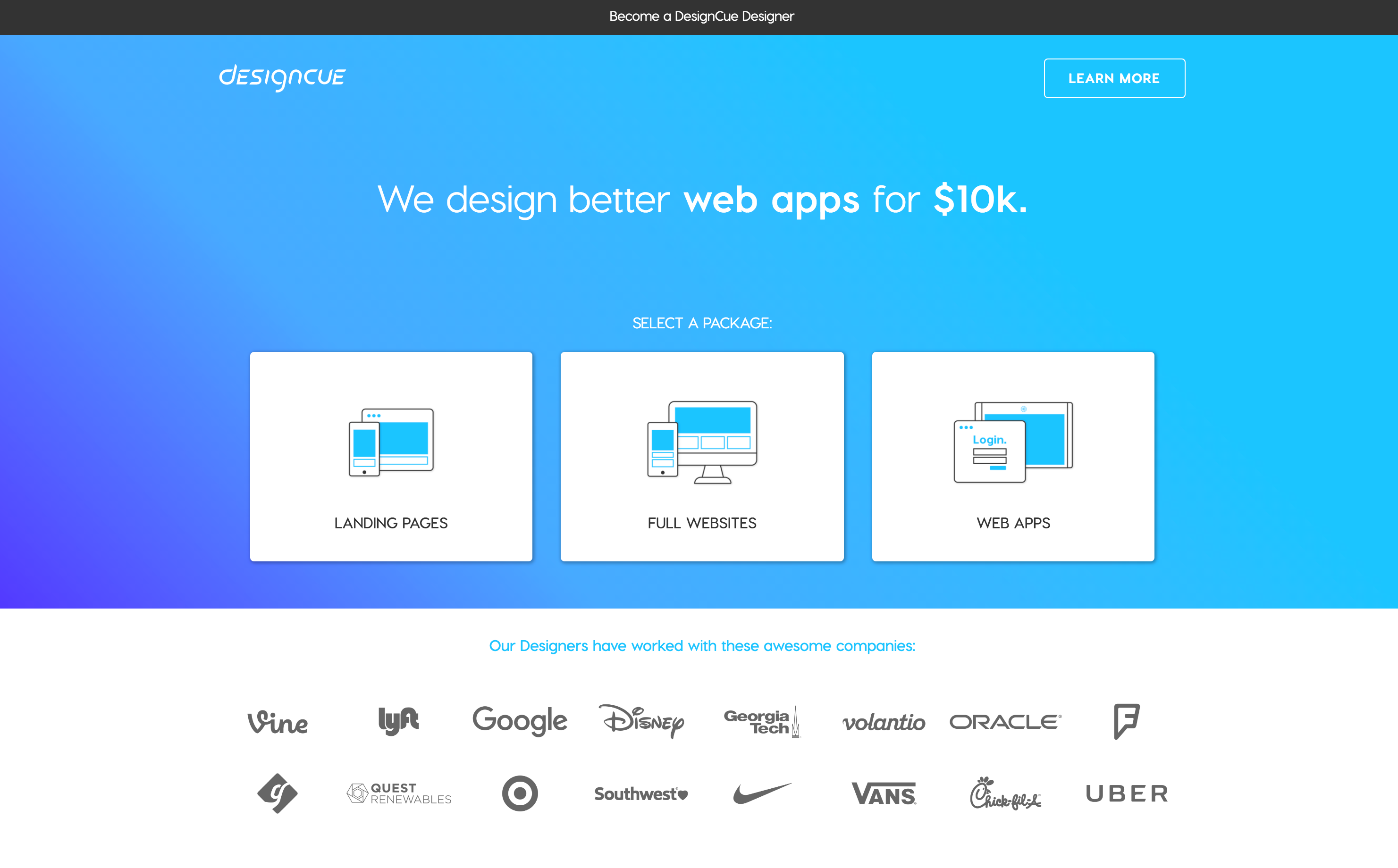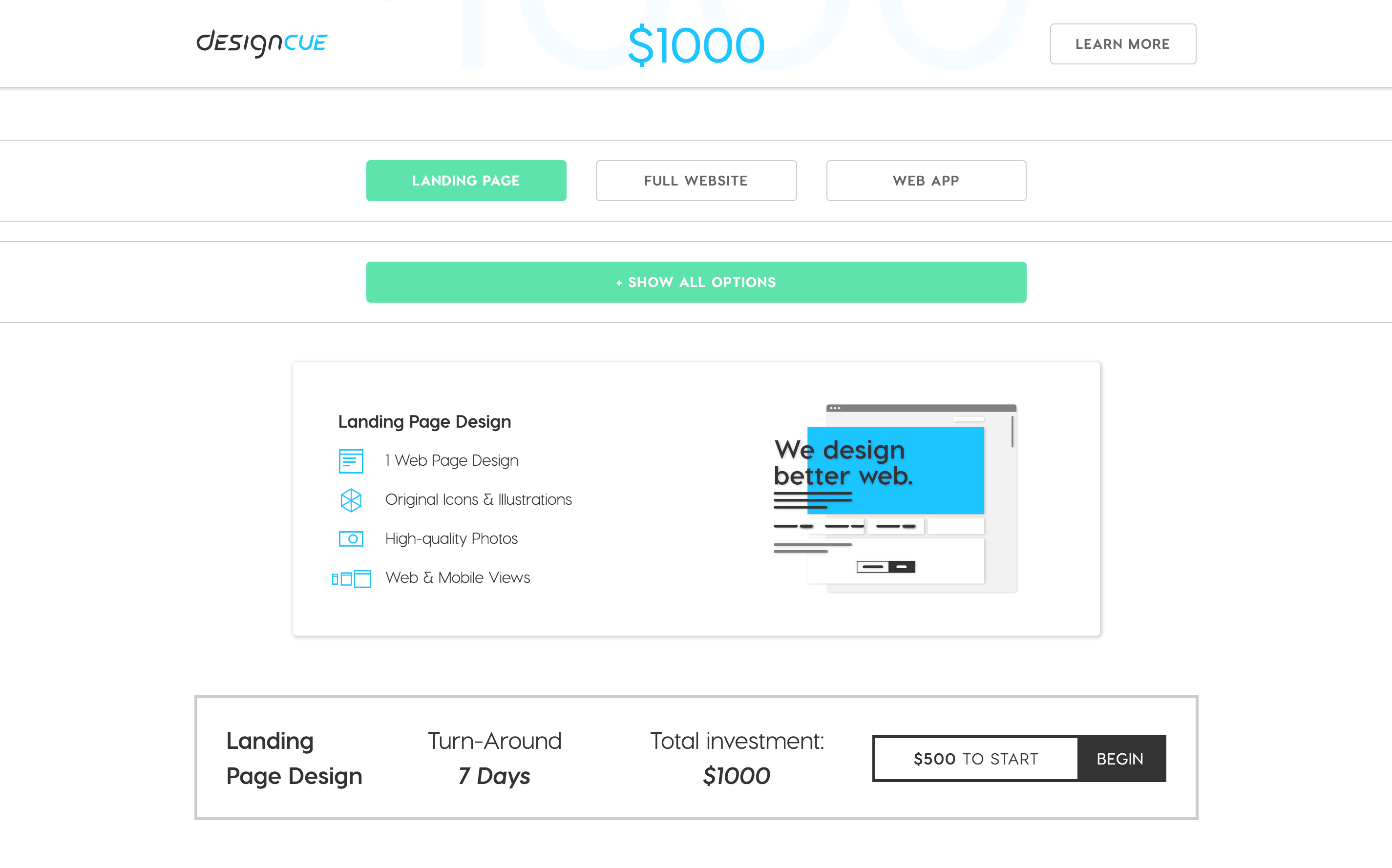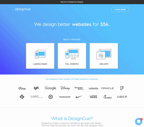 Hey there! I'm not part of DesignCue (it might even be in direct concurrence with what I'm doing as a designer currently) but it seems to be a really cool solution for businesses to get a direct quote and good designers to answer their design needs.
