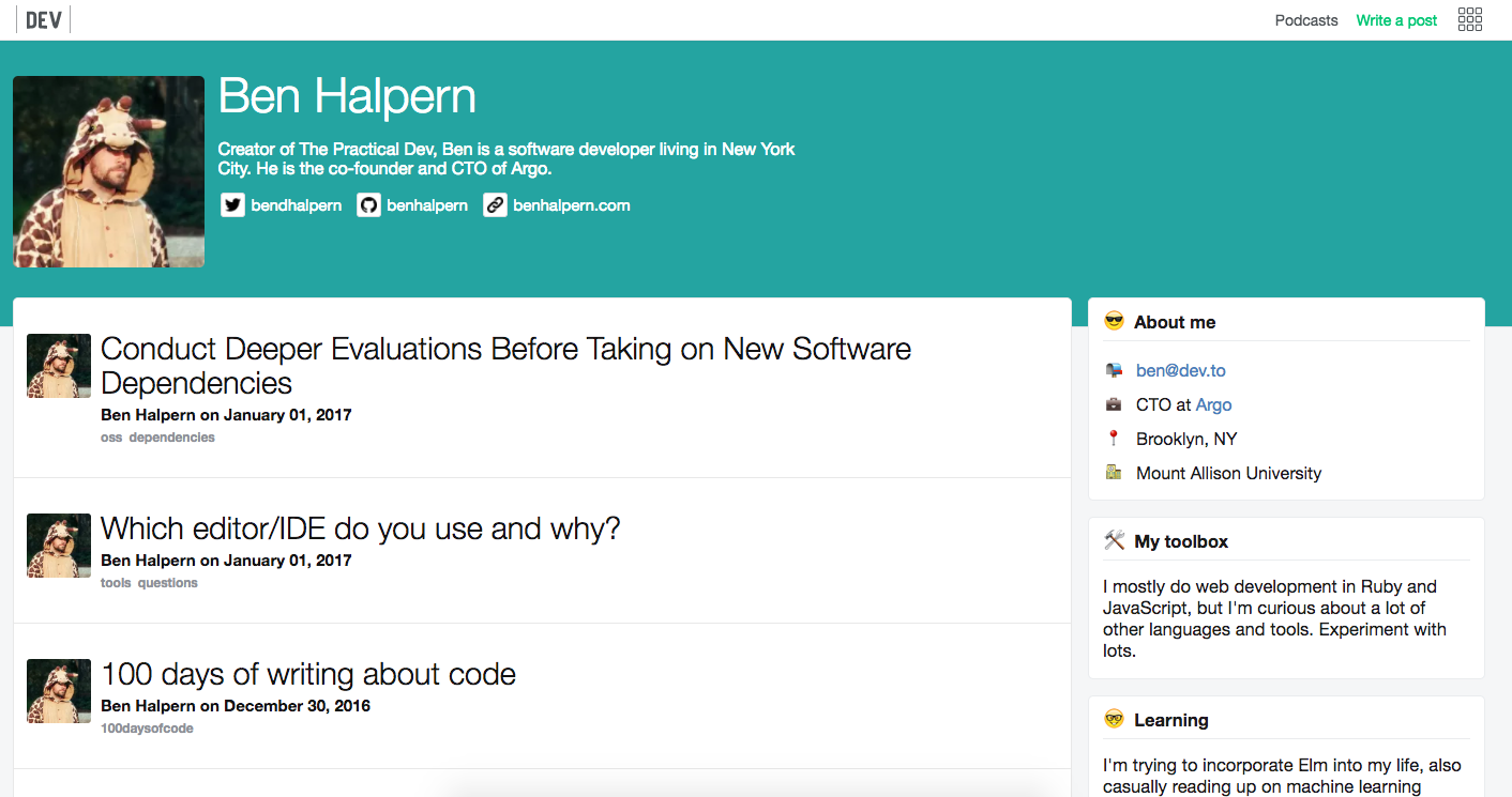 - dev.to is a publishing platform for developers to share ideas