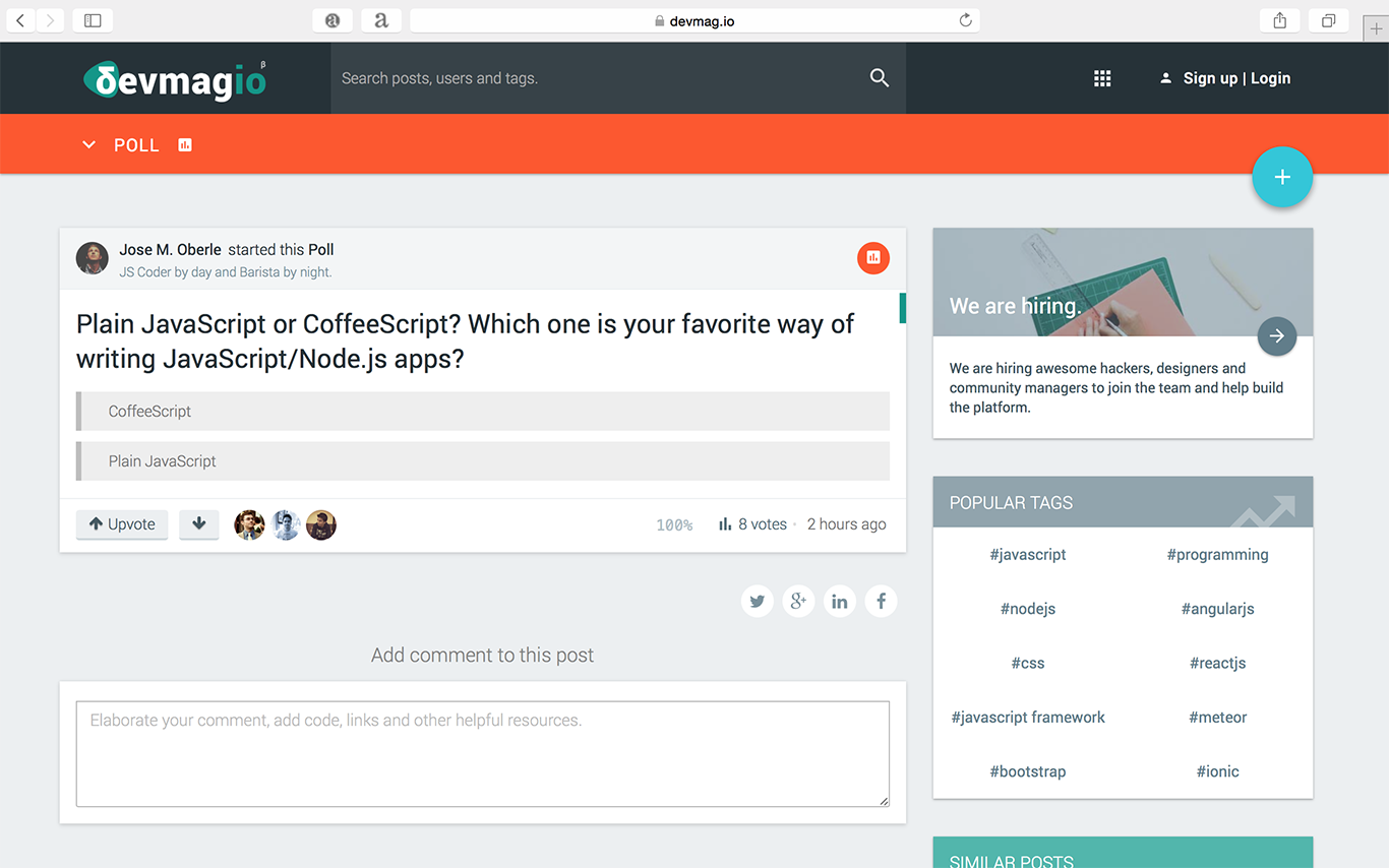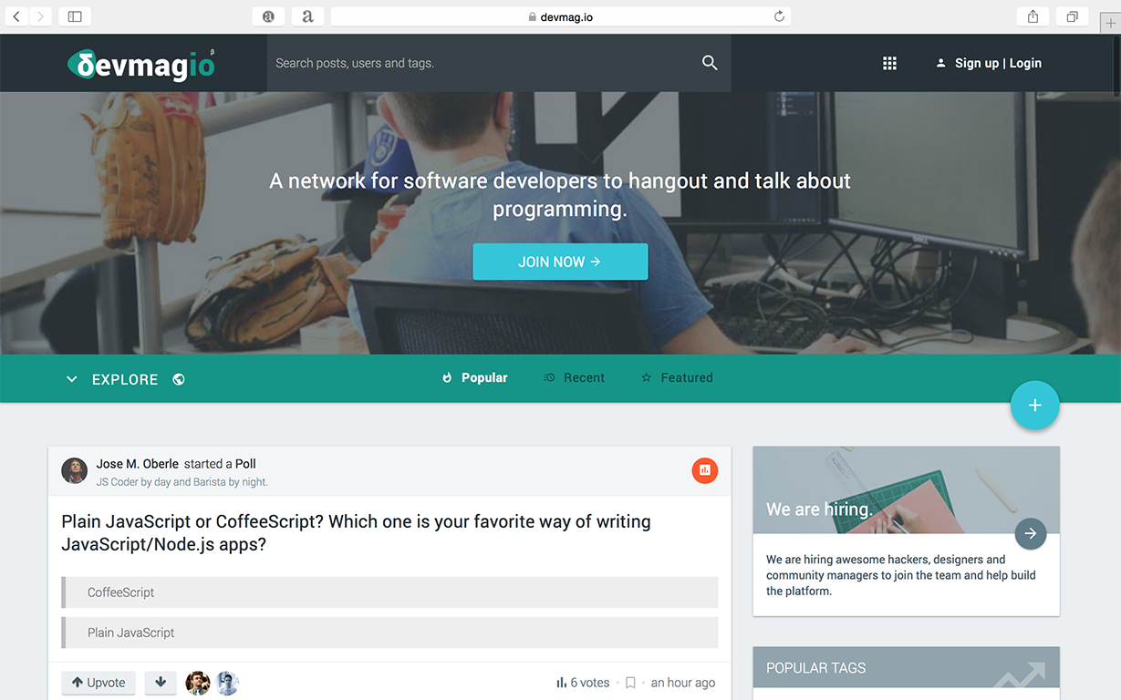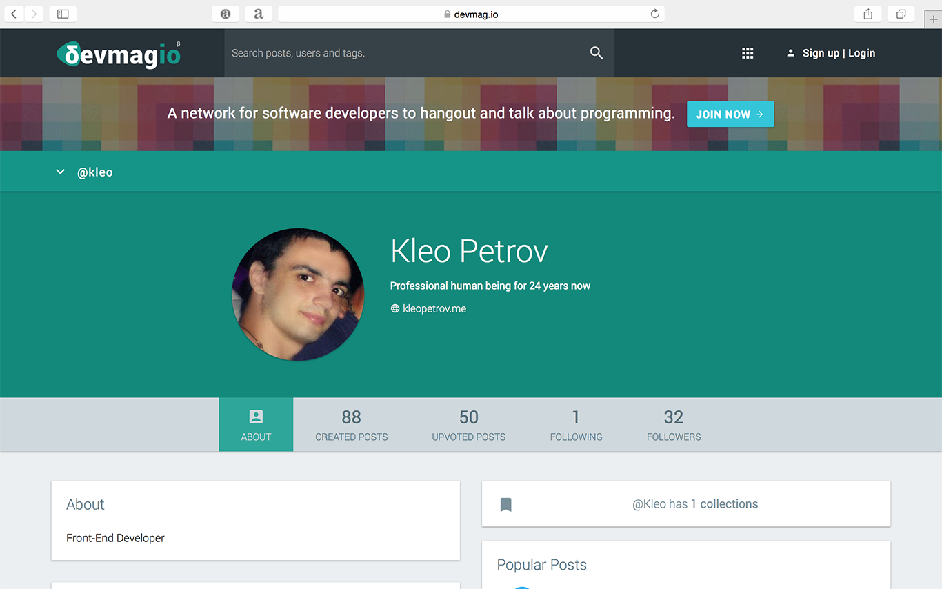devmag.io helps software developers grow their knowledge and become better. Share your knowledge, connect with experts and discover awesome programming content (Github, Articles, CodePen etc) through an open network.