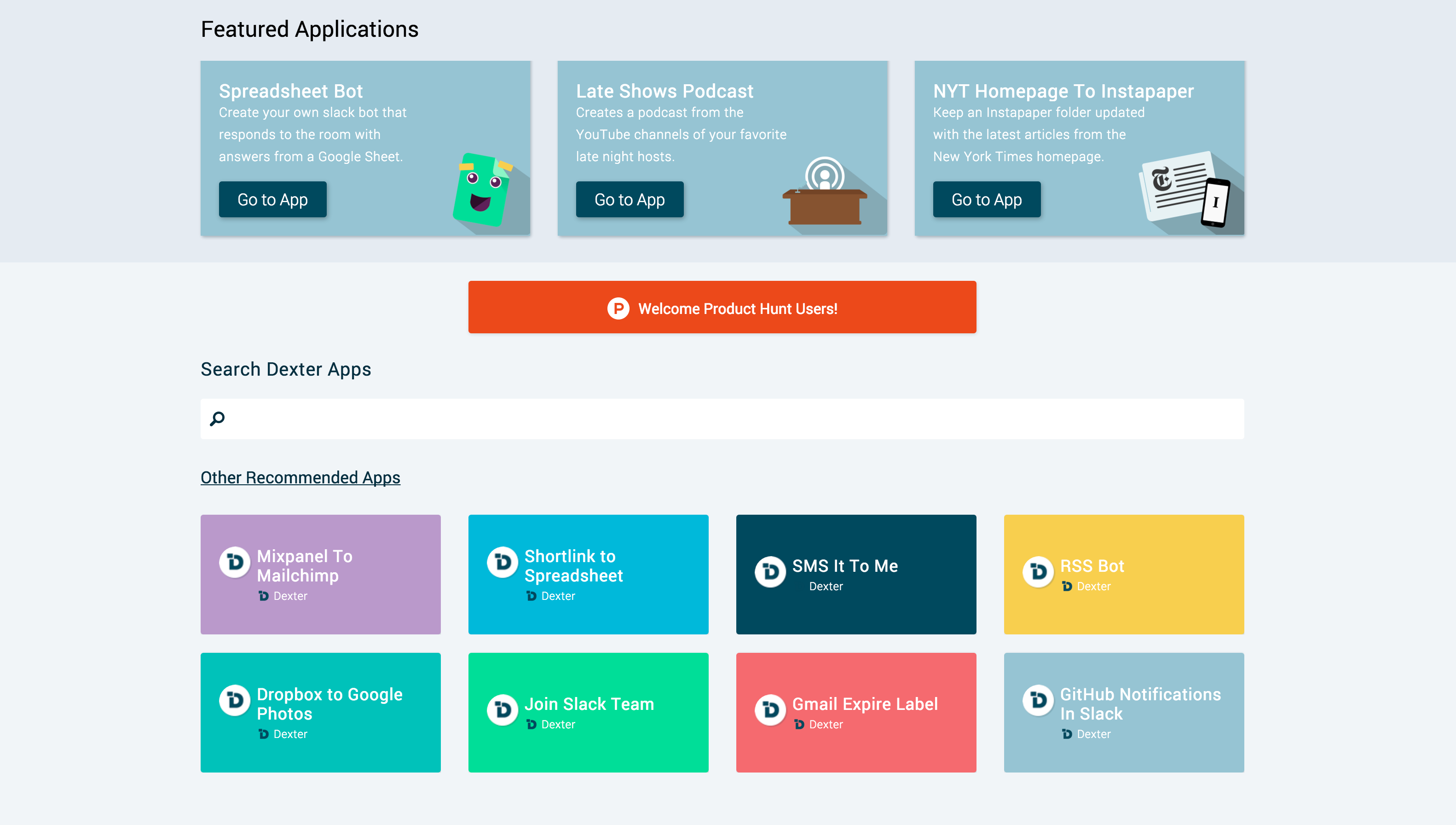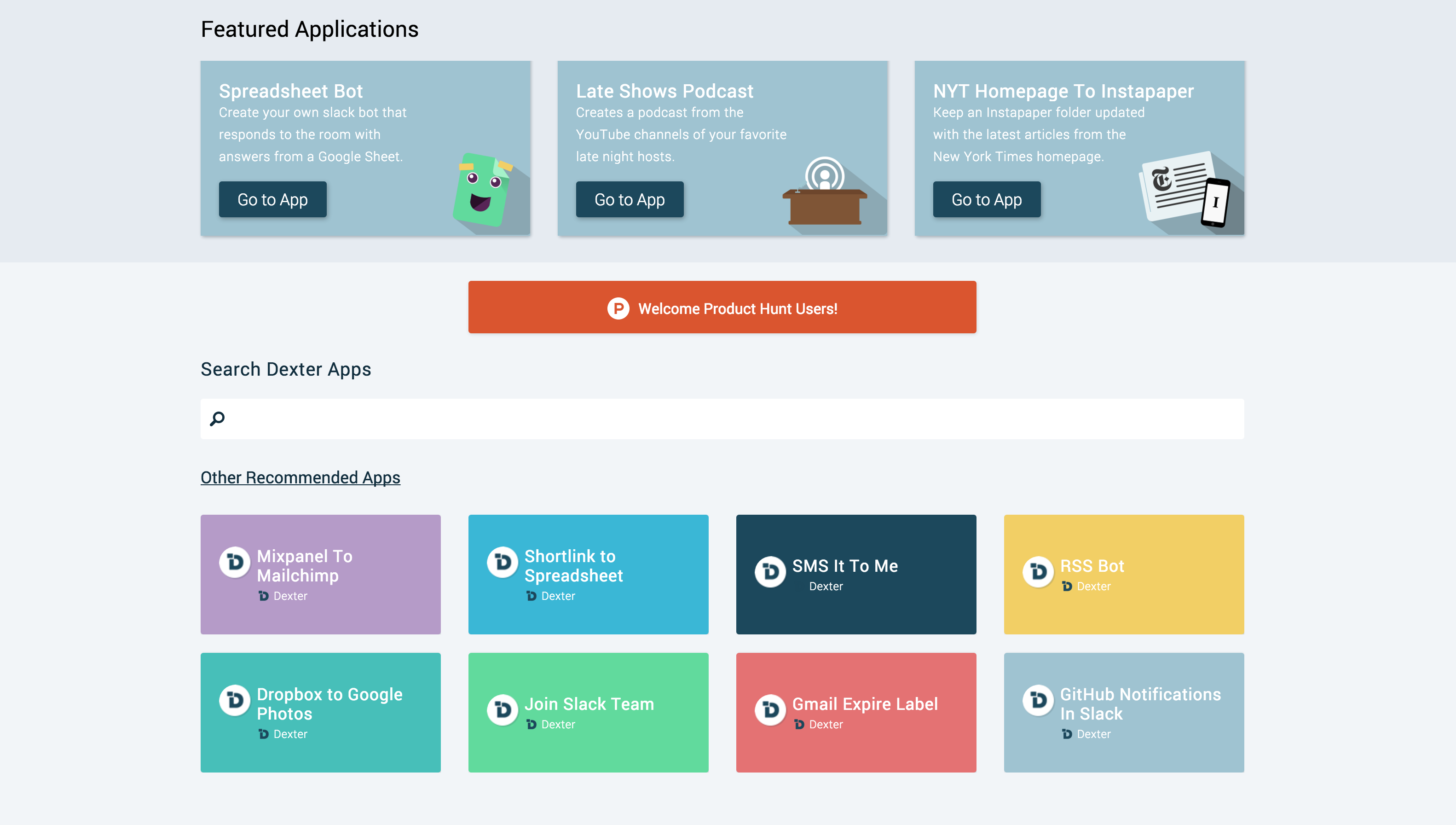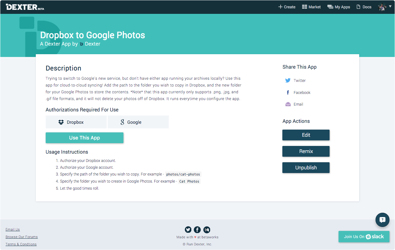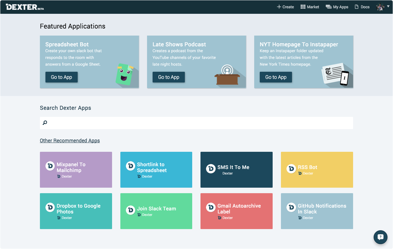 First, for those of you that are new to Dexter, it is a completely open platform that makes building shareable apps that use features from your favorite third party services as simple as possible.