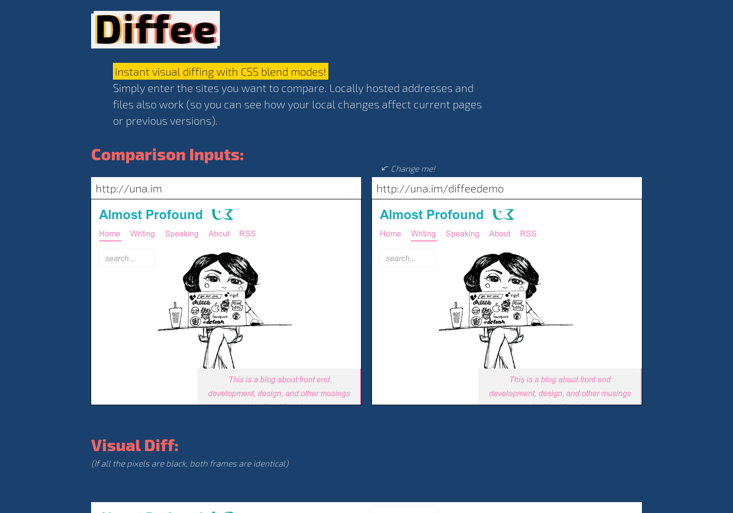 Instant visual diffing between websites