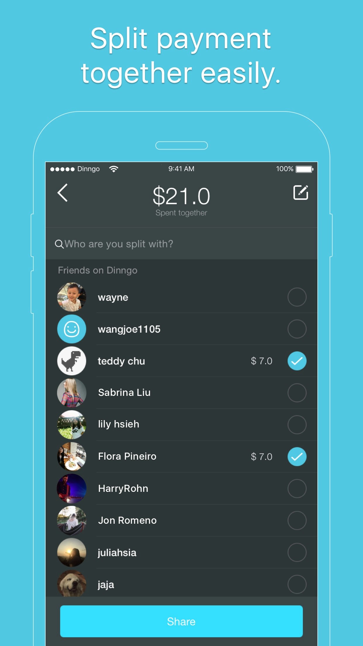 Dinngo is a social media payment app thats simplifies your group related expenses by automatically splitting your payments for you. By snapping a photo and tagging your friends in-app, expenses and bills are then split amongst those tagged. Now you can keep track visually of who owes who, while keeping all your friends in the kn… See more