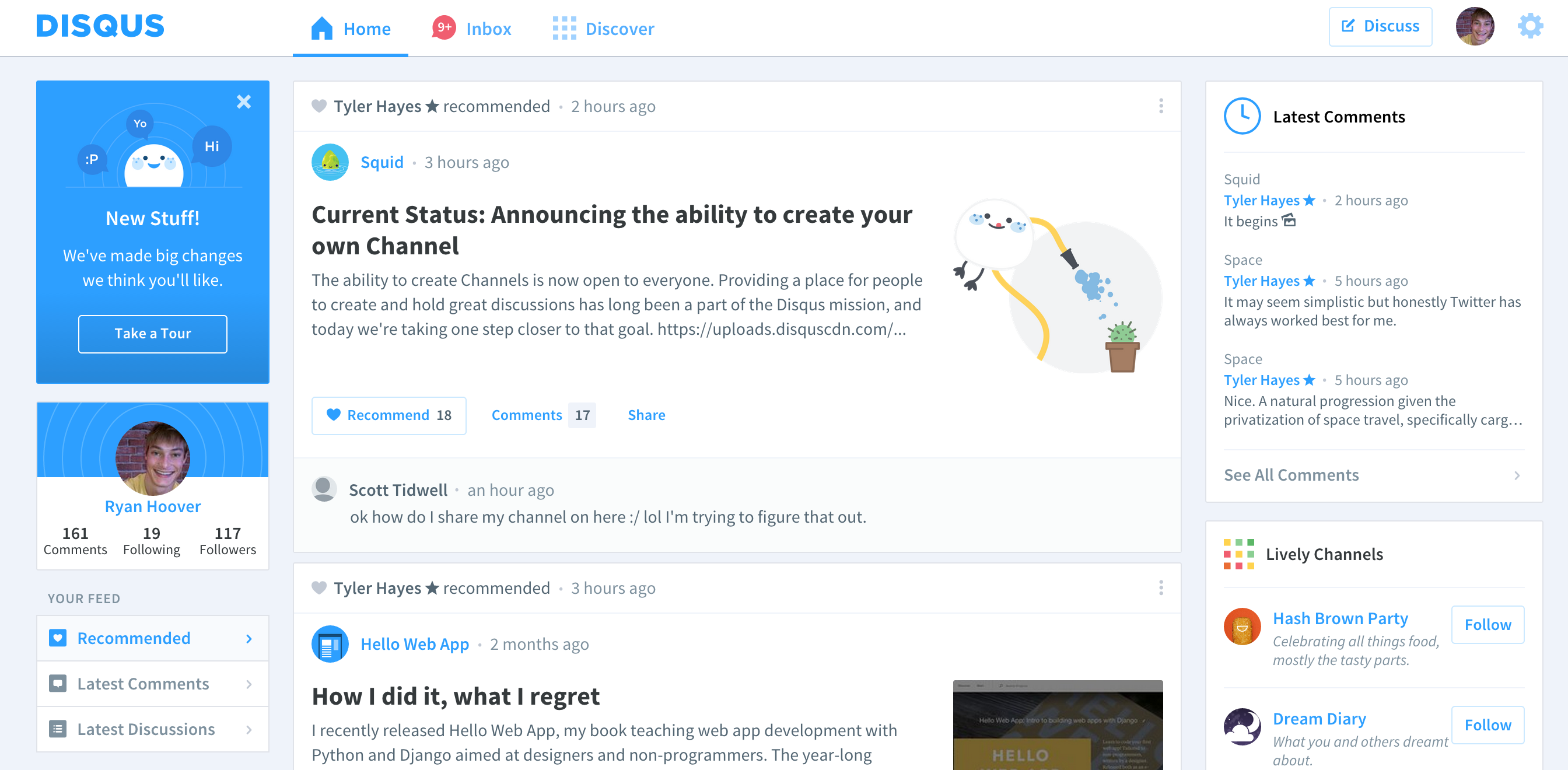 Hi, Daniel here (CEO, cofounder) and I’m pretty pumped about this! Some people may know about Disqus through the comment system, but this version of Disqus.com (what we internally dub “Disqus Home”) has existed since around last Fall. Historically Disqus was primarily a network of sites that use our commenting widget. Lots of sites used it — and many very in… See more