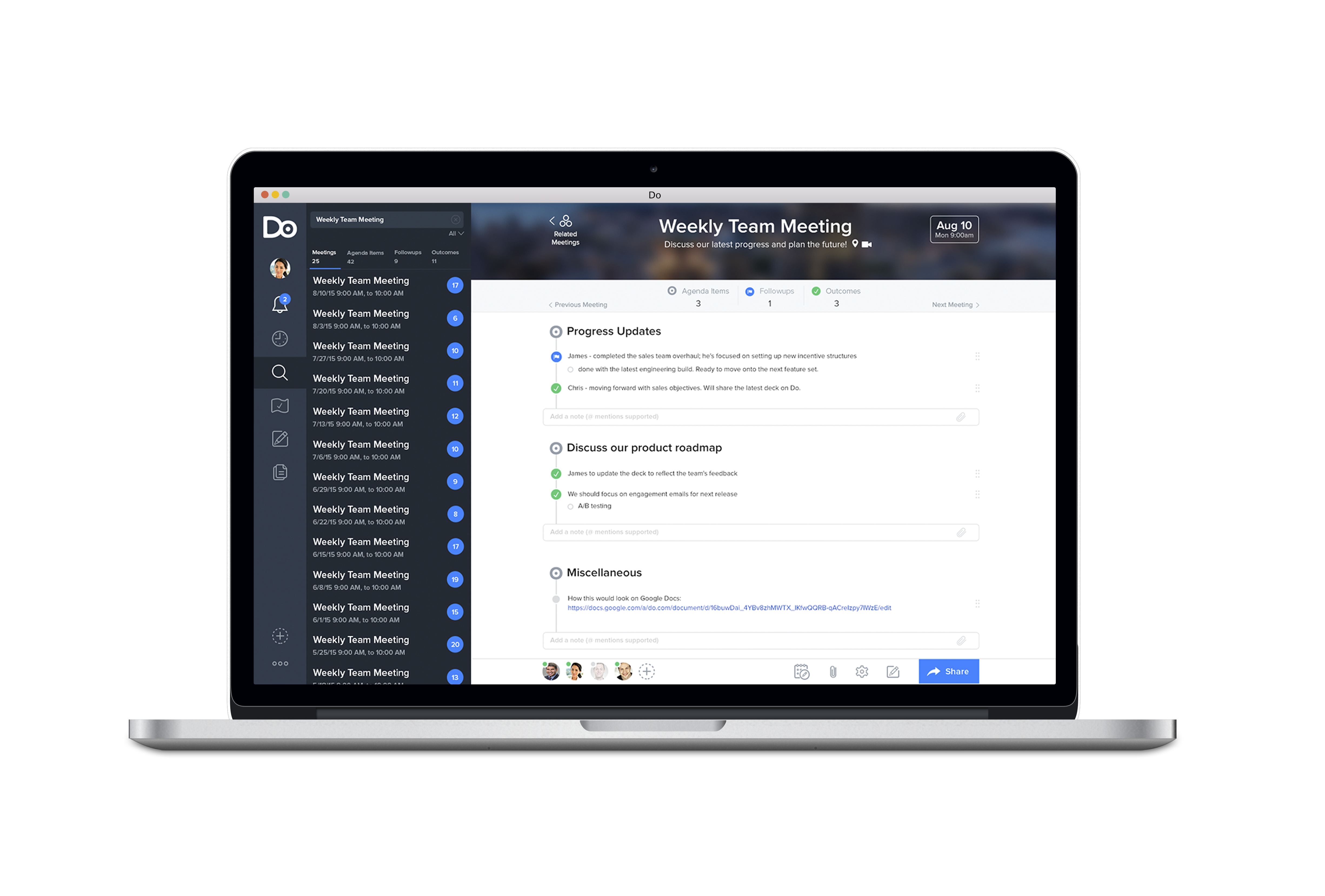 Founder here. We are really excited to finally launch Do today. I've been thinking about work, meetings, and productivity since before my time at Yammer, and Do is the product we're building to help people love work.