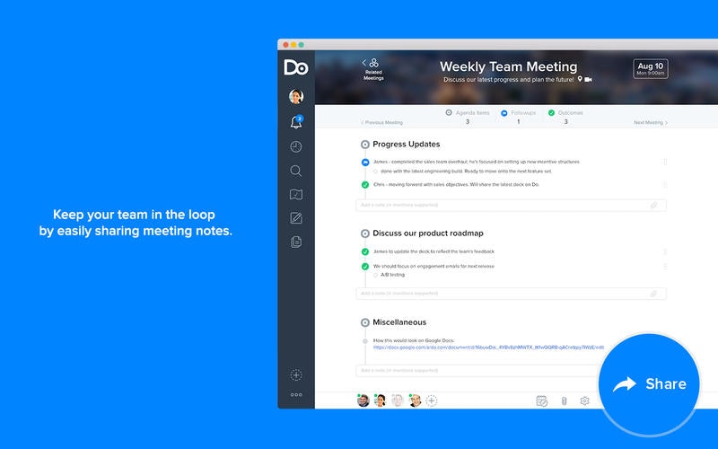 We are thrilled to launch Do for Mac today. It joins the family of Do.com on the web, Do on Apple Watch on your wrist, and Do for iPhone and iPad when your laptop is just too heavy :) Today we also announced we're now running more than 100k meetings every month across these platforms throughout more than 10k companies (http://blog.do.com/post/12879751...) - … See more