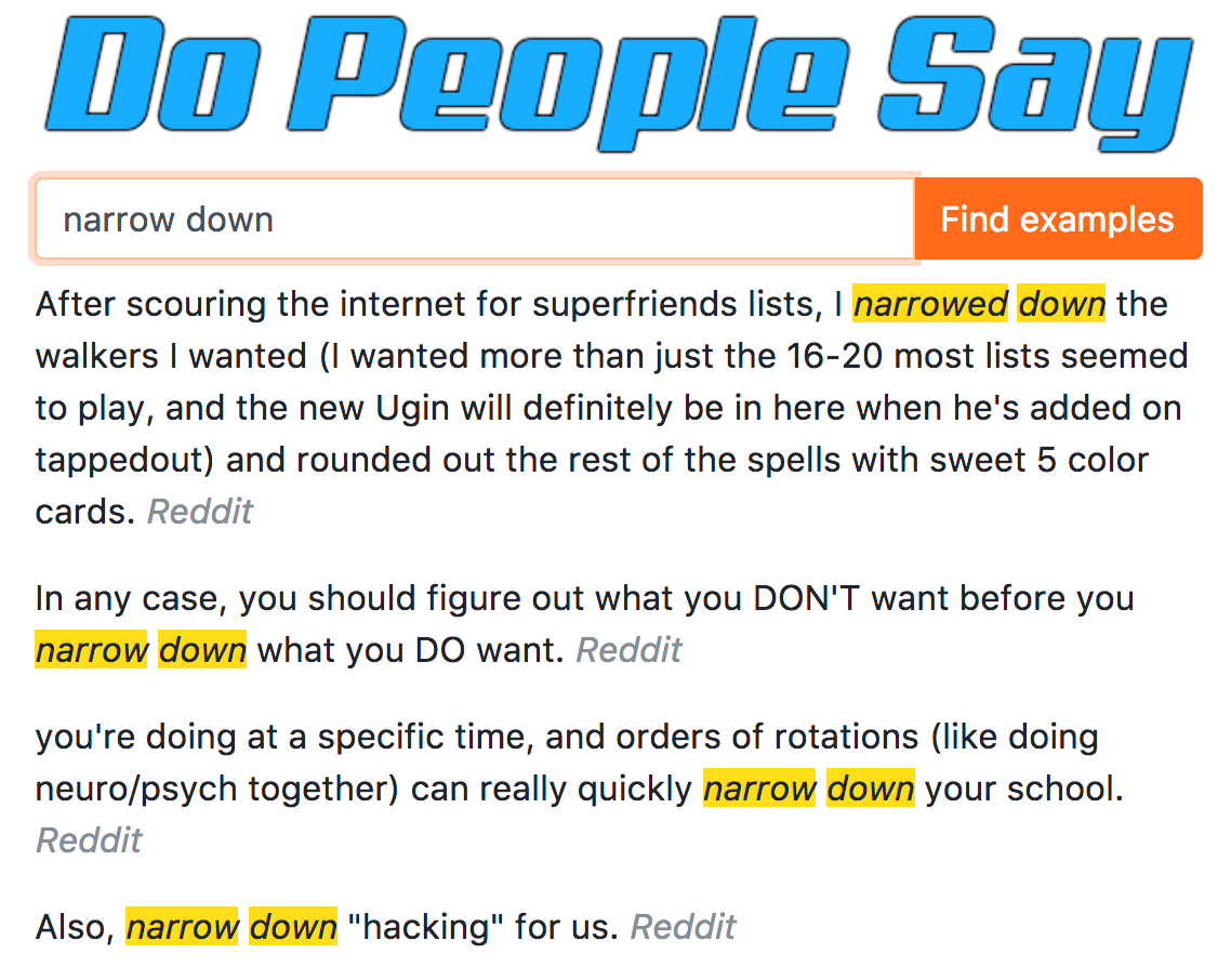DoPeopleSay. Find the context where English word or phrase is used or check if it is used by English speakers at all.