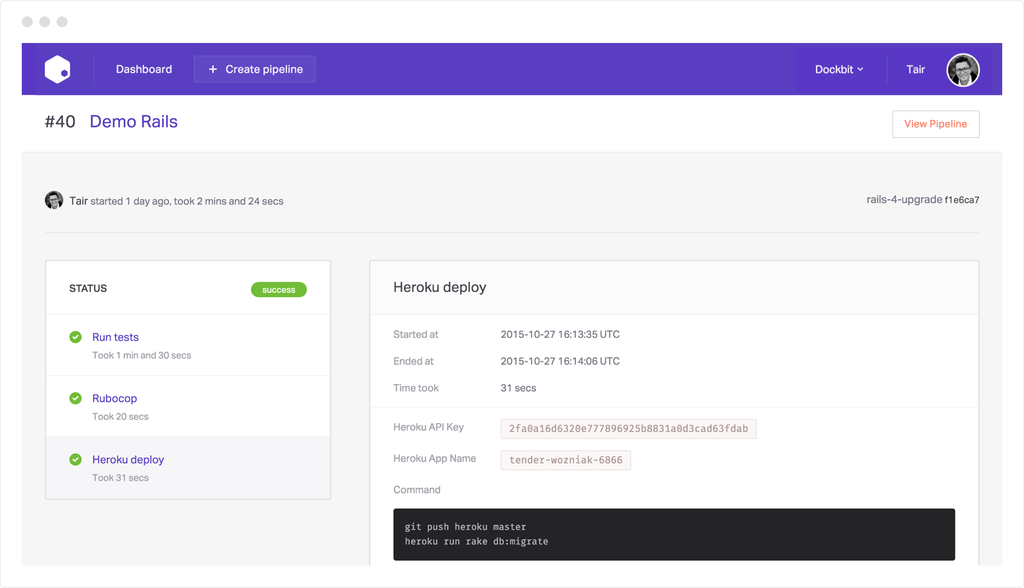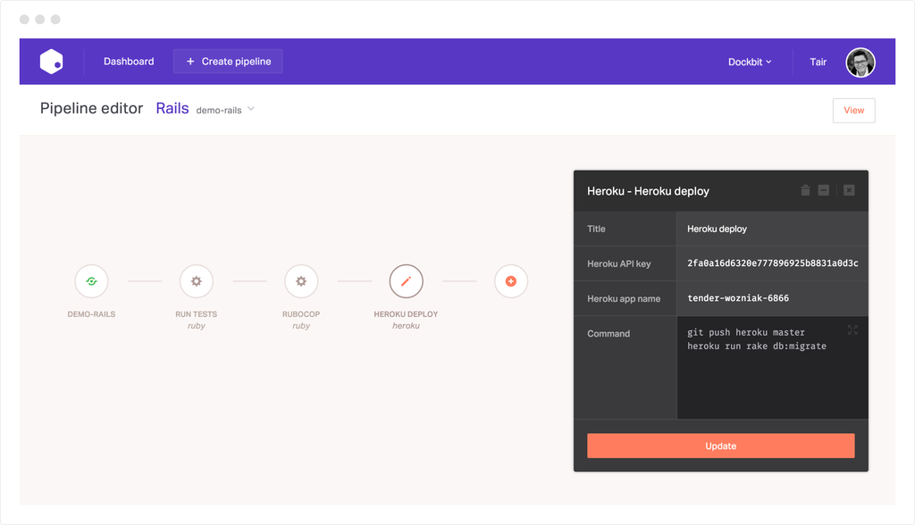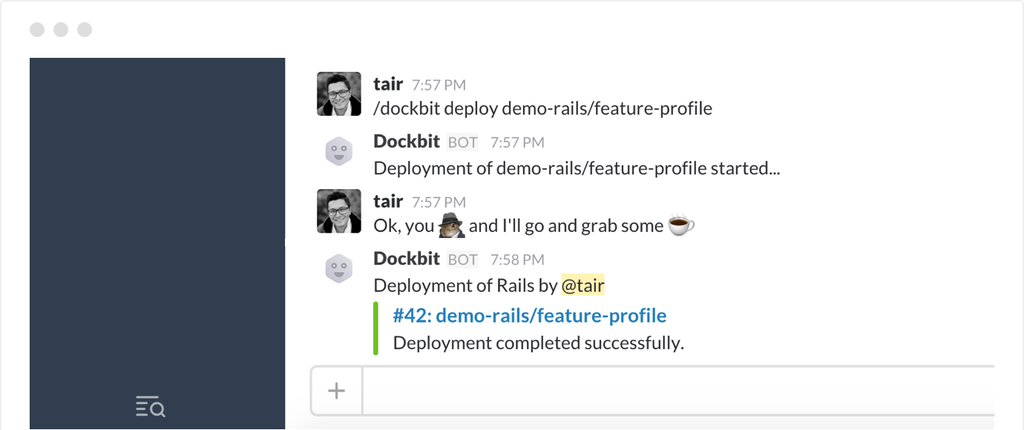 Dockbit aimed to turn complex software deployments into simple and manageable workflows. The product hasn't taken off and been discontinued. Dockbit turns complex software deployments into simple and manageable workflows, so you can spend less time tinkering and more time creating awesome software.