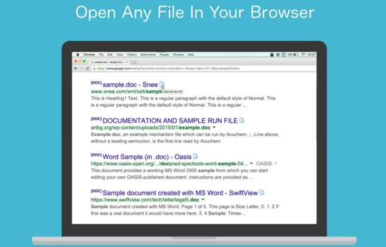 This is pretty awesome. It lets you view a lot of different file types, right in your browser, without needing the relevant app. e.g :