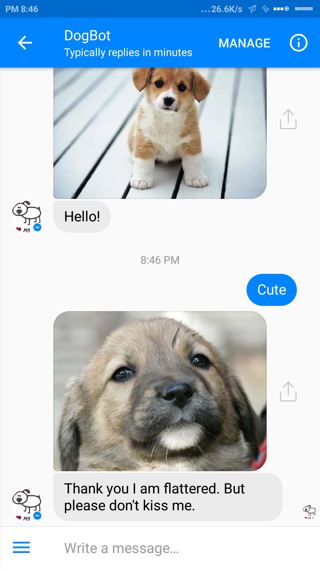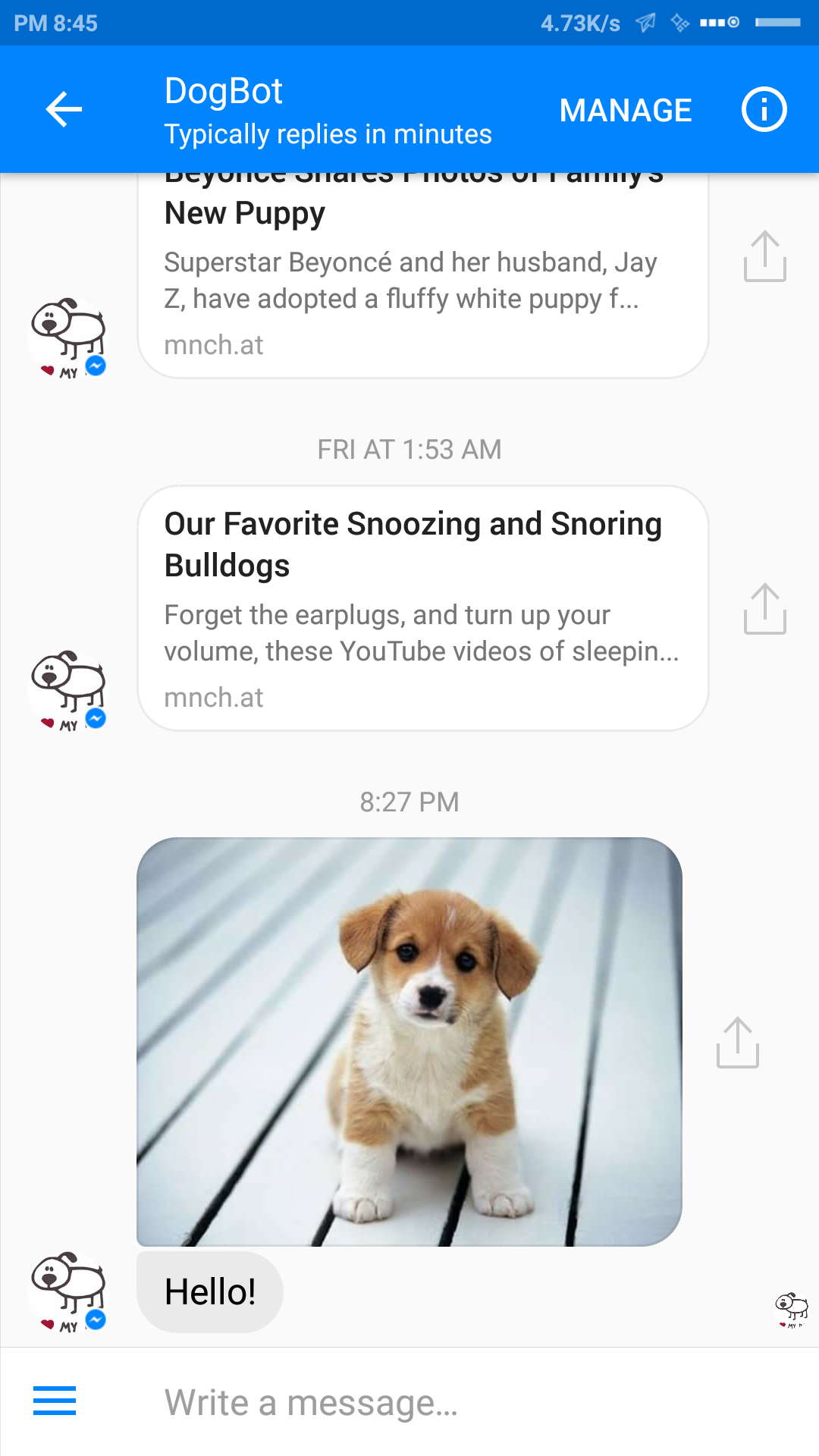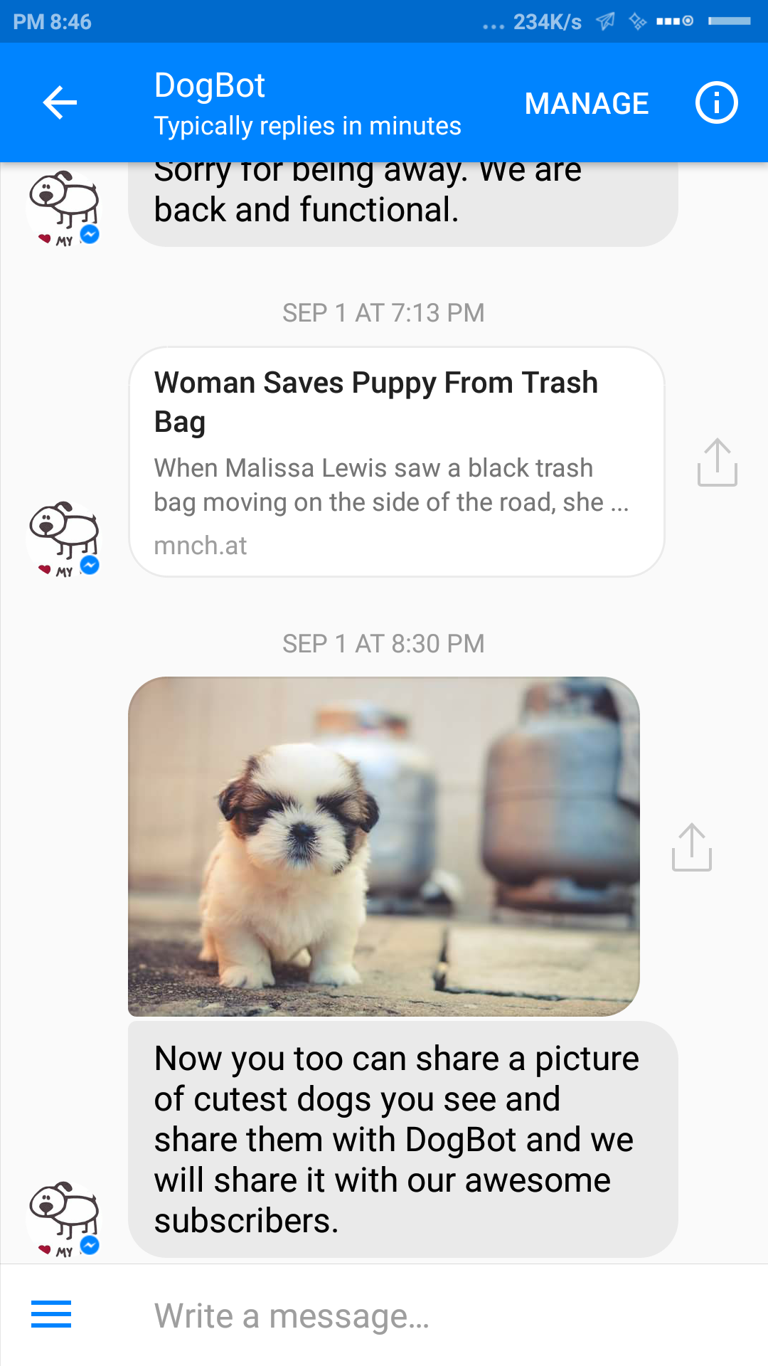Daily cute pictures of dogs on your Messenger