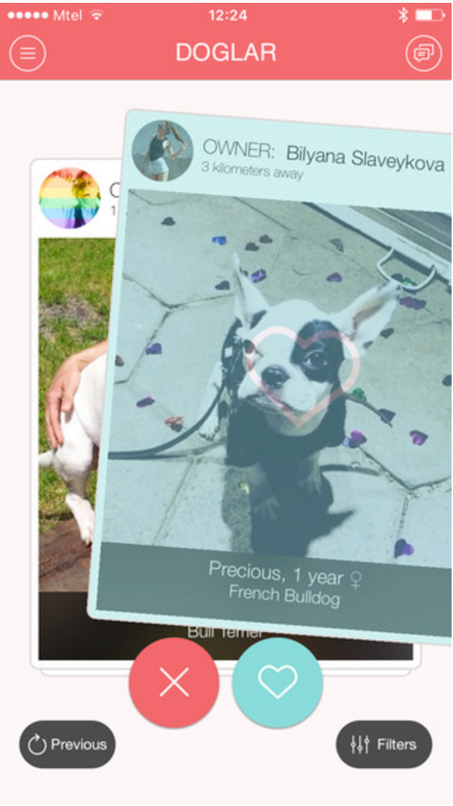 DOGLAR is the place where all dog owners can explore the dogs and dog owners around them. We want to support the dog community by offering them a nice, catchy and super easy Tinder-like way to establish first interactions and then - to simply walk their dogs together and share valuable information between them about raising happy and healthy dogs :) We are supporting the community in more ways such as listing the dog friendly places (restaurants, bookstores, co-working places, etc.) where they are always welcome with their best friends, organizing walks, campaigns and in the future - alerts and news about important dog topics.