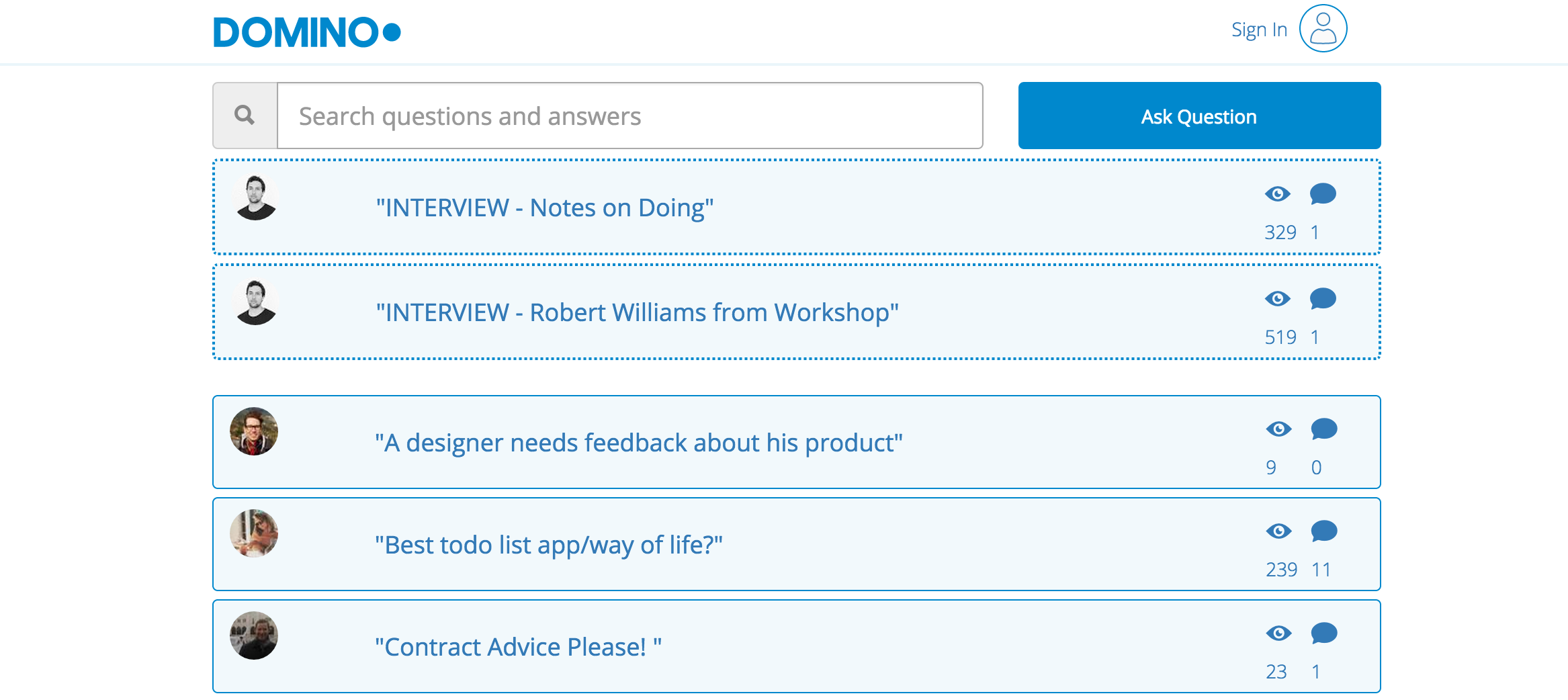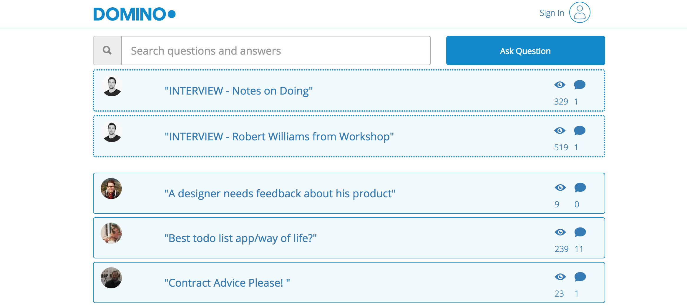 Hey everyone! I'm one of the makers of Domino (I share the honor with @clbecker). We want to make freelancing as easy as tying your shoelaces (single knot, not a double). There's currently far too much friction involved in getting started as a freelancer, let alone succeeding, and we believe that education is the first piece of the puzzle.