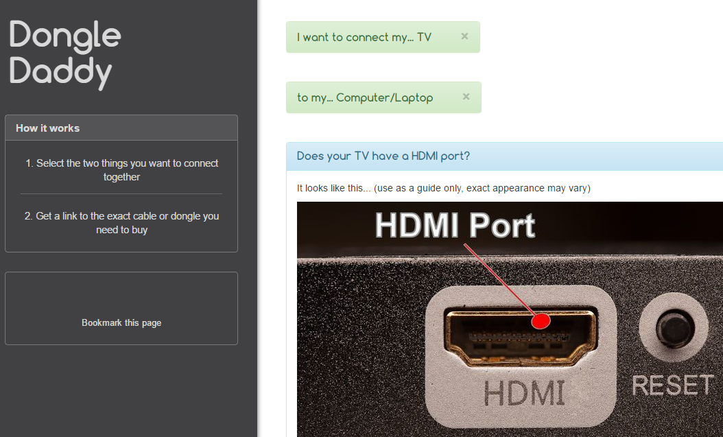 Great idea but data seems to be outdated π VGA: no, HDMI: no -> "Sorry, I don't know what cable you need"