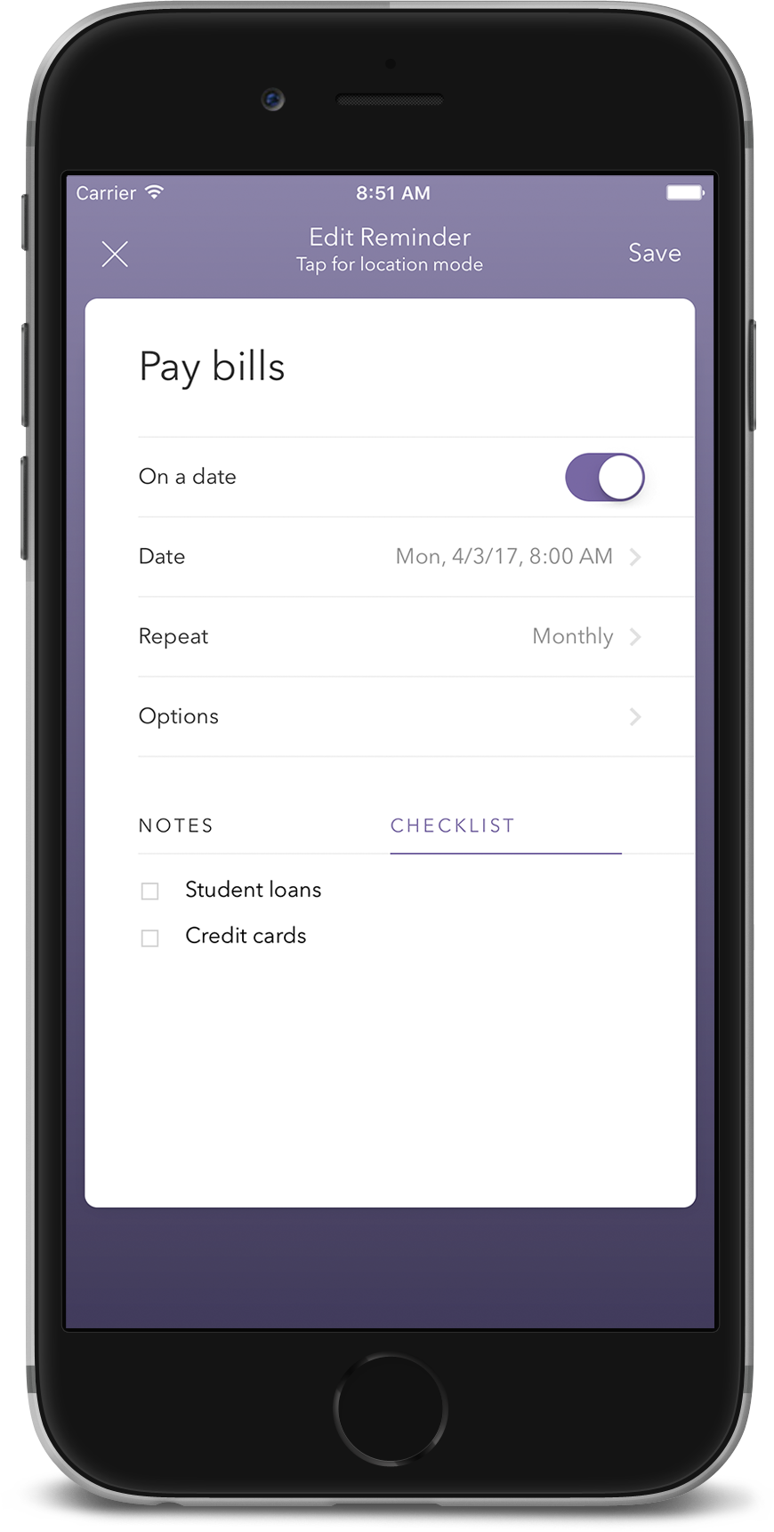 Impressive iOS Reminders alternative with great location reminders and gestures!