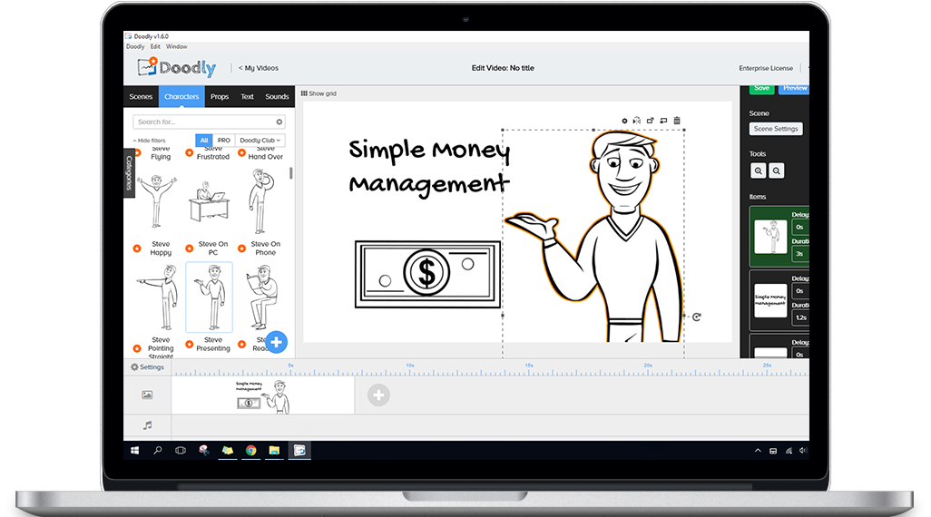 - Tap into royalty-free library of done-for-you scenes, characters, props, and sounds.