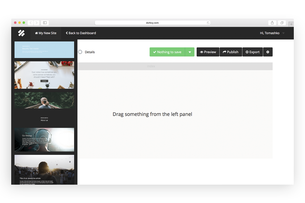 Dorkoy makes it easy and fun to build websites in minutes. With Dorkoy, you can create landing pages, product pages, stories or fully packed websites for all kind of content. It allows you to personalize your website as much as you need, so your website will not look like a template.