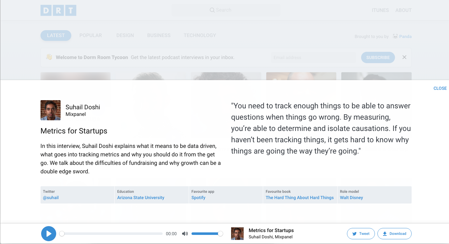 The goal of the podcast show is to create a collection of useful interviews for founders and makers.