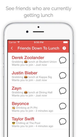 These apps are always difficult to scale because of the required (geographically-confined) network effects. I can see this being particularly useful for large companies. Coordinating lunch plans as a large group is difficult and this might help more introverted folks mingle with teammates they don't normally hang with.