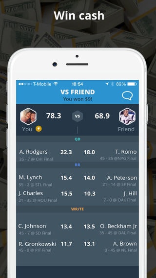 So far, I've won $23.84 on Draft in playing my first 5 friends. I've never played fantasy sports before! It's less intimidating signing up for Draft and competing with a few friends, one-on-one.