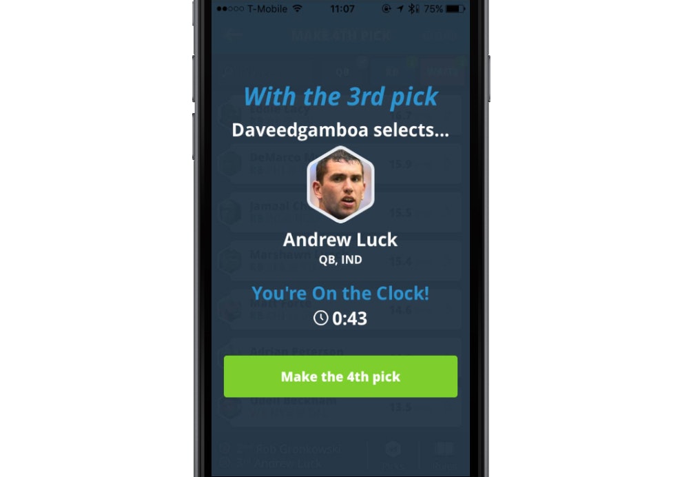 1) It seems like Draft is a "pull out your phone at a bar and make a lineup in 2m" experience versus other games oriented around heavy research (for desktop). What pushed you in this direction? Do you think this is what's going to take off with "normals" (NFL fans that don't play fantasy, season-long players)?