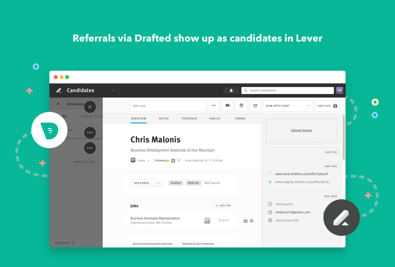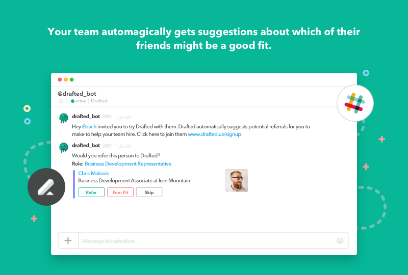 - Drafted detects new jobs in Lever and generates suggestions for every team member to refer